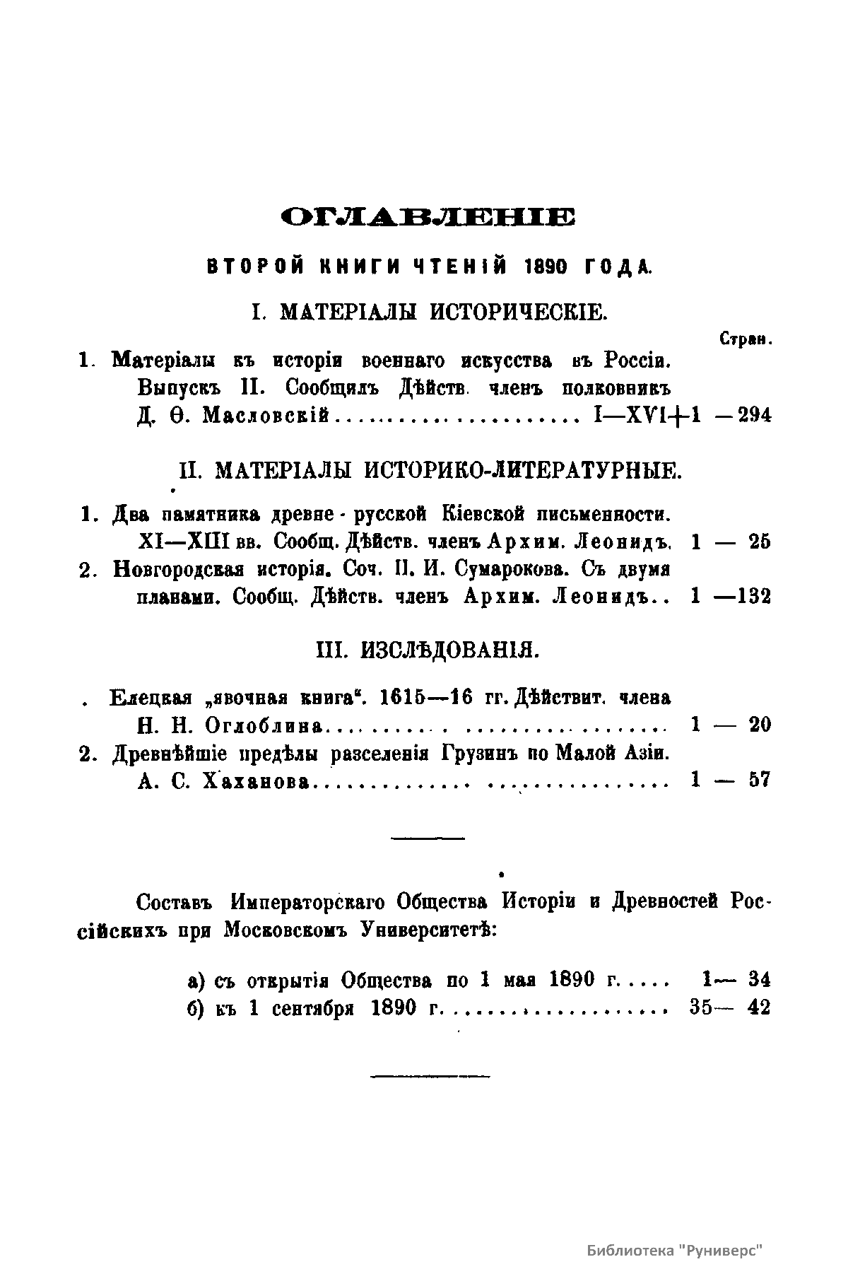 Чтенiя въ Императорскомъ Обществѣ Исторiи и Древностей Россiйскихъ при Московскомъ Университетѣ. 1890 годъ. Книга вторая