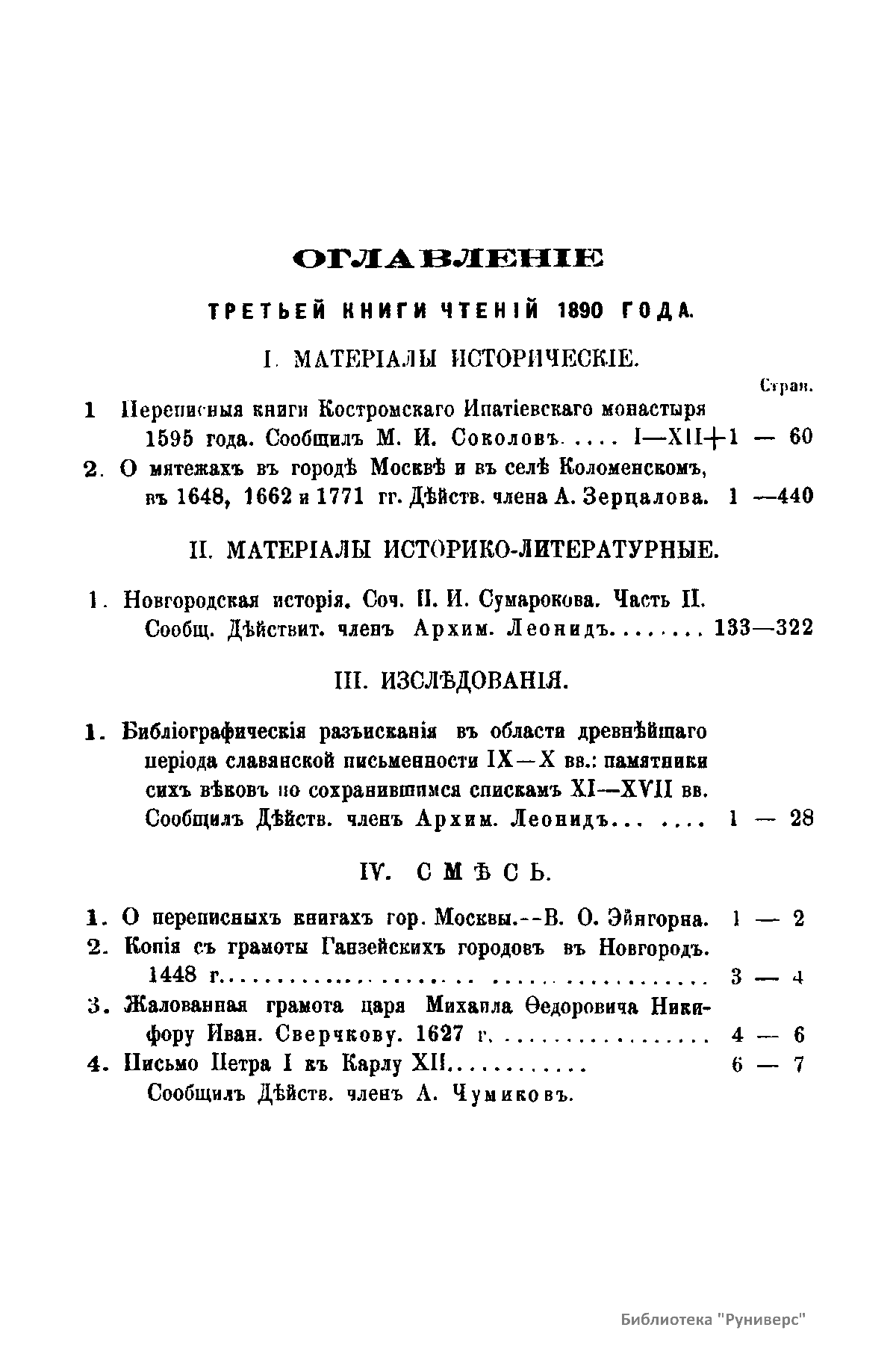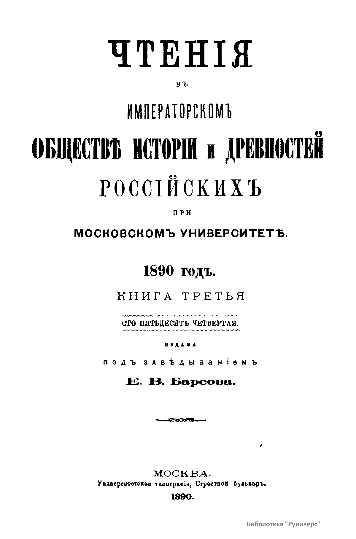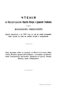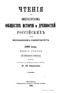 Чтенiя въ Императорскомъ Обществѣ Исторiи и Древностей Россiйскихъ при Московскомъ Университетѣ. 1890 годъ. Книга третья