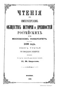 Чтения в Императорском Обществе Истории и Древностей Российских при Московском Университете. 1890 год. Книга третья