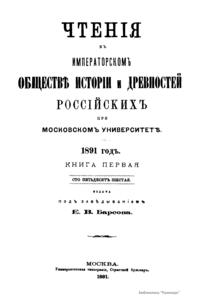 Чтенiя въ Императорскомъ Обществѣ Исторiи и Древностей Россiйскихъ при Московскомъ Университетѣ. 1891 годъ. Книга первая