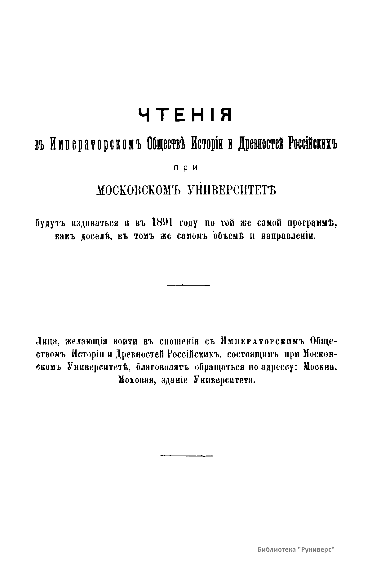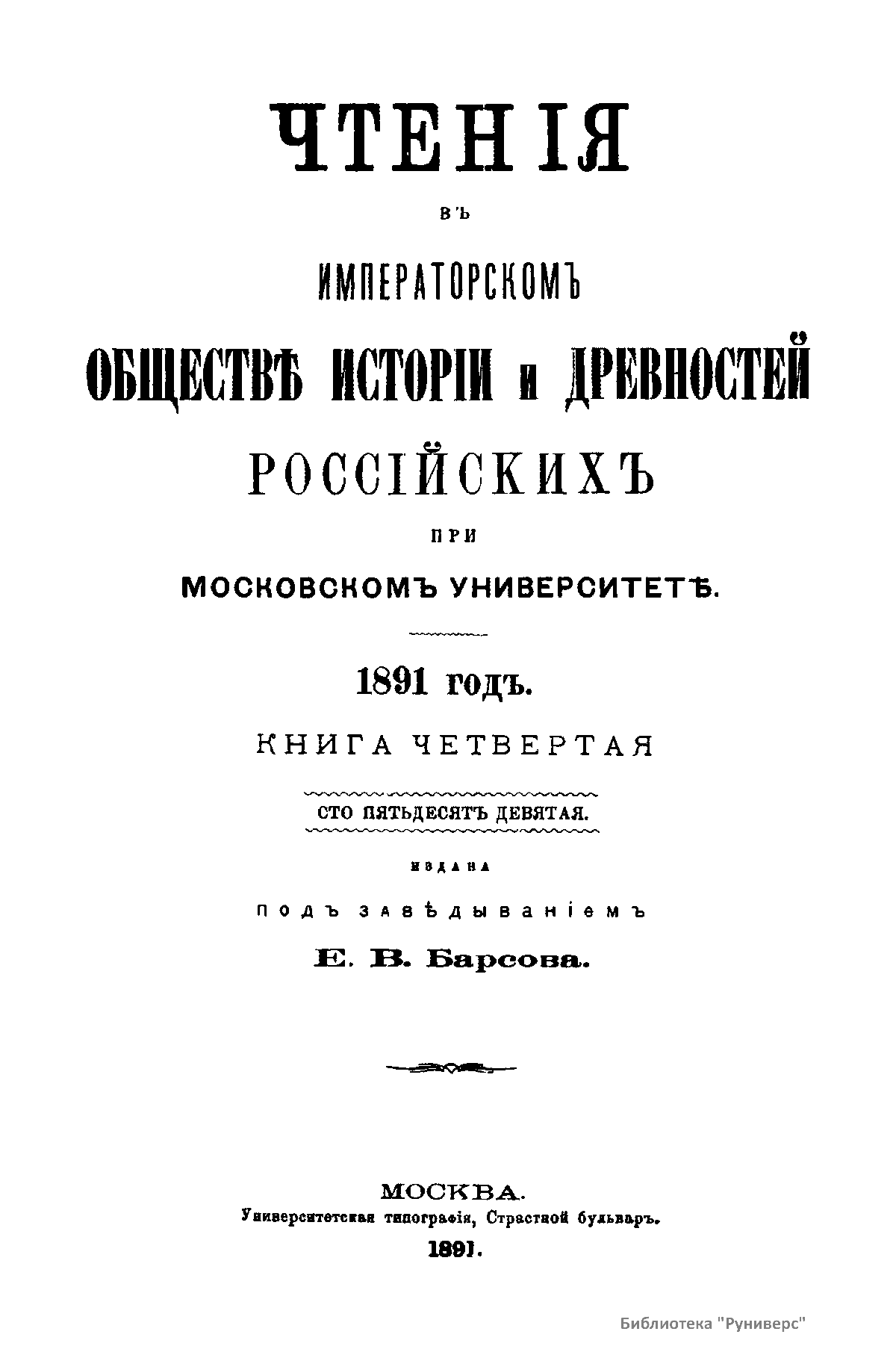 Чтенiя въ Императорскомъ Обществѣ Исторiи и Древностей Россiйскихъ при Московскомъ Университетѣ. 1891 годъ. Книга четвертая