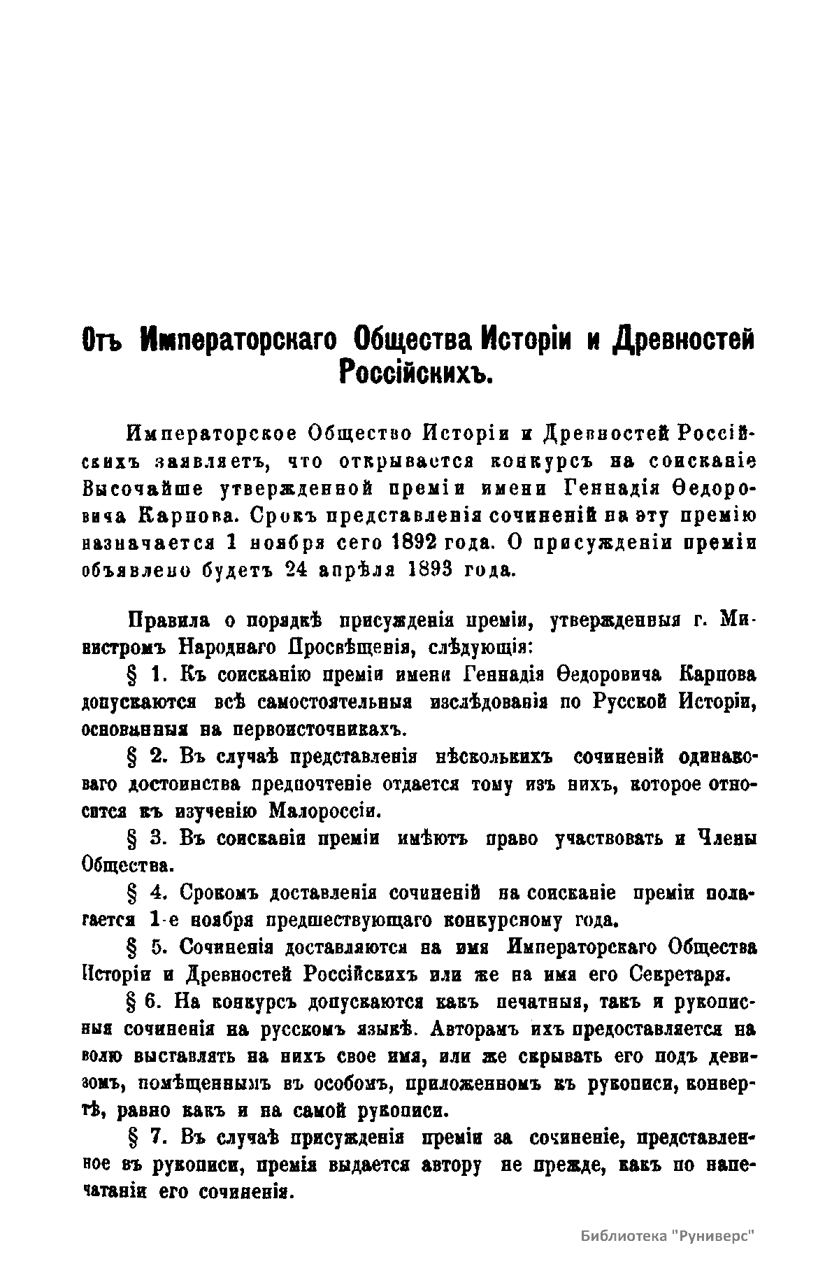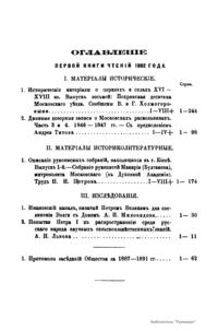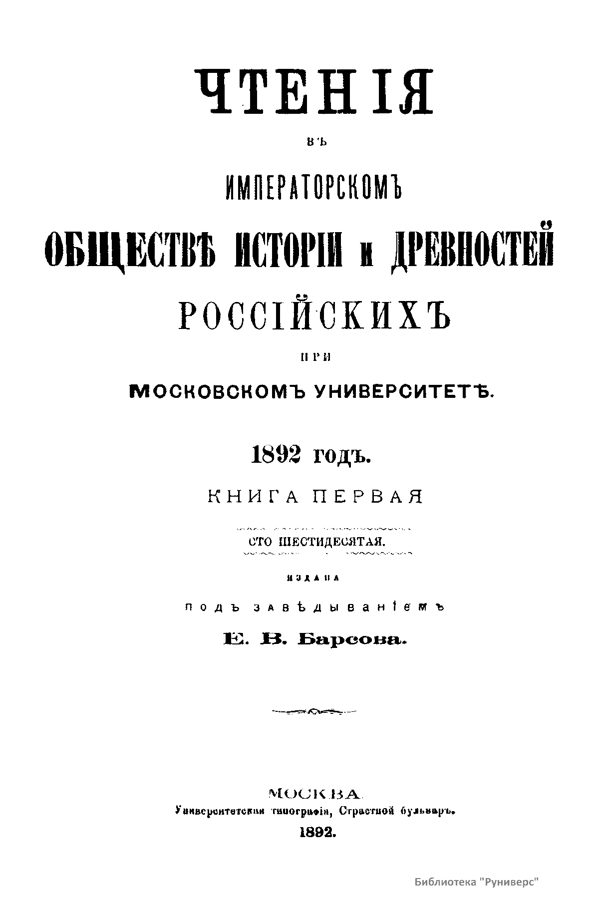 Чтенiя въ Императорскомъ Обществѣ Исторiи и Древностей Россiйскихъ при Московскомъ Университетѣ. 1892 годъ. Книга первая