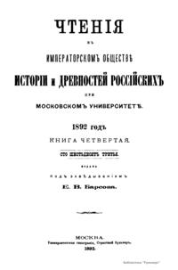 Чтенiя въ Императорскомъ Обществѣ Исторiи и Древностей Россiйскихъ при Московскомъ Университетѣ. 1892 годъ. Книга четвертая