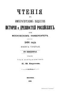 Чтенiя въ императорскомъ обществѣ Исторiи и Древностей Россiйских при Московском Университетѣ. 1894 годъ. Книга третья