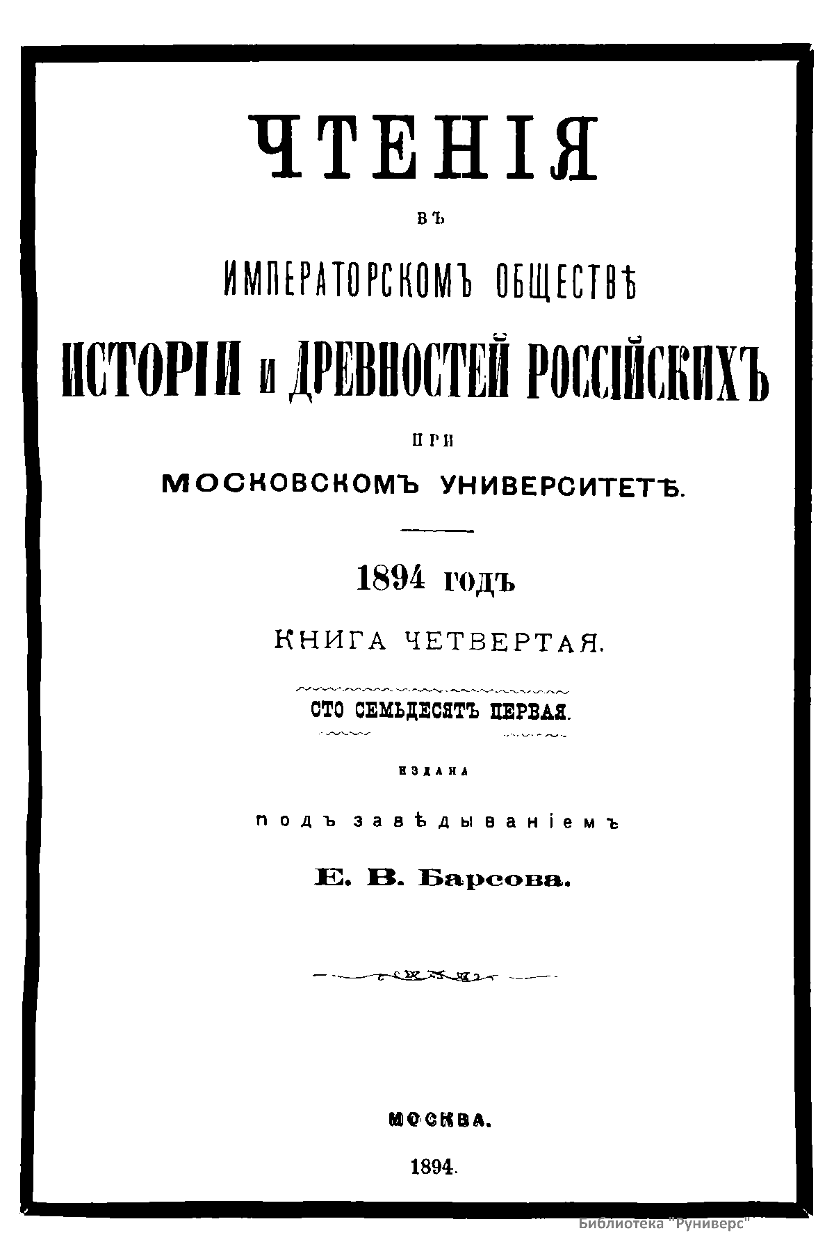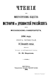 Чтенiя въ императорскомъ обществѣ Исторiи и Древностей Россiйских при Московском Университетѣ. 1894 годъ. Книга четвертая