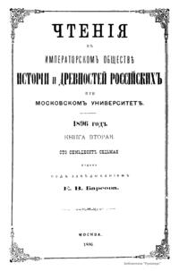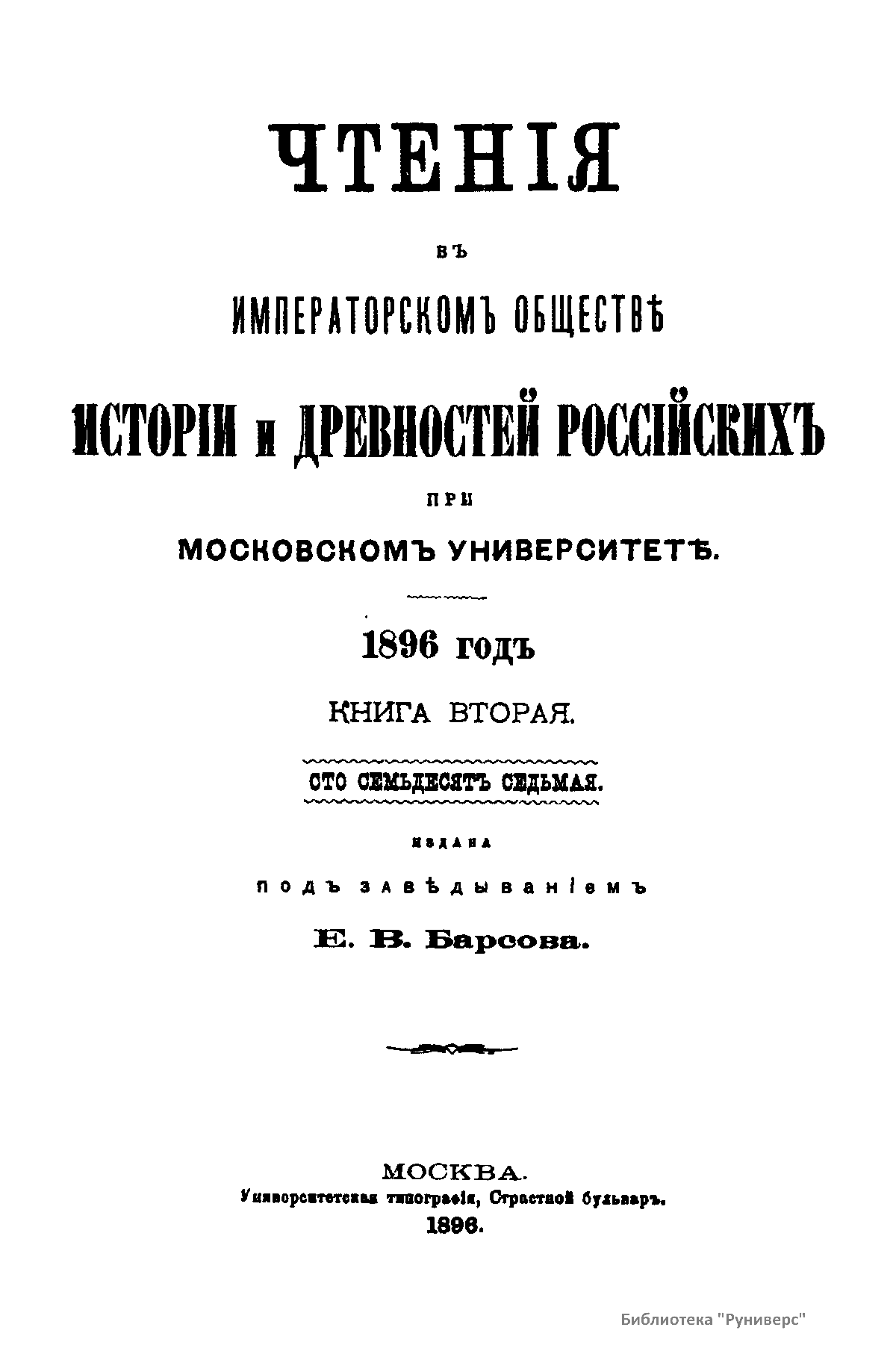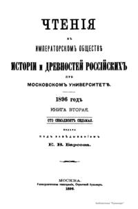 Чтенiя въ императорскомъ обществѣ Исторiи и Древностей Россiйских при Московском Университетѣ. 1896 годъ. Книга вторая