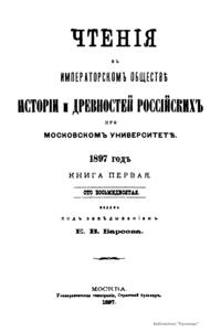 Чтения в Императорском Обществе Истории и Древностей Российских при Московском Университете. 1897 год. Книга первая