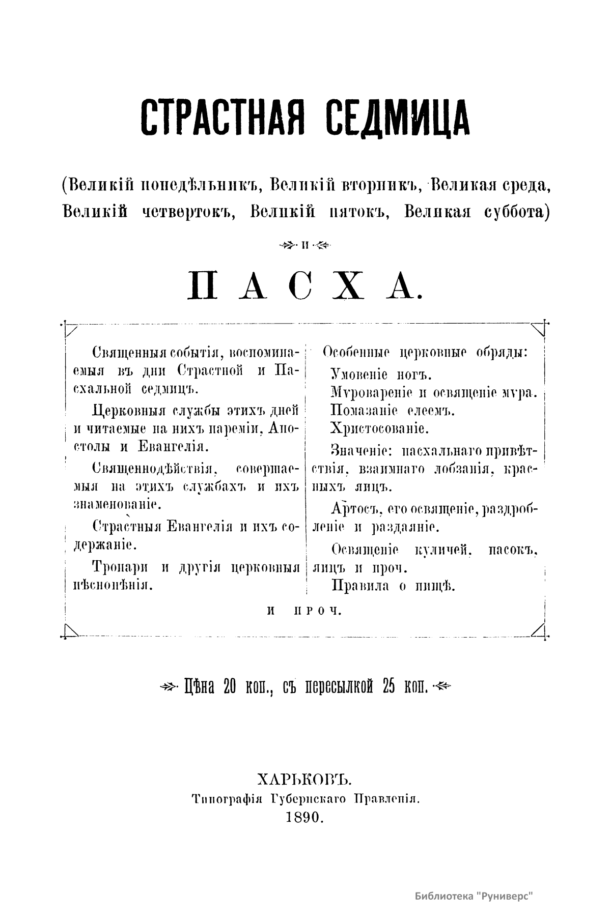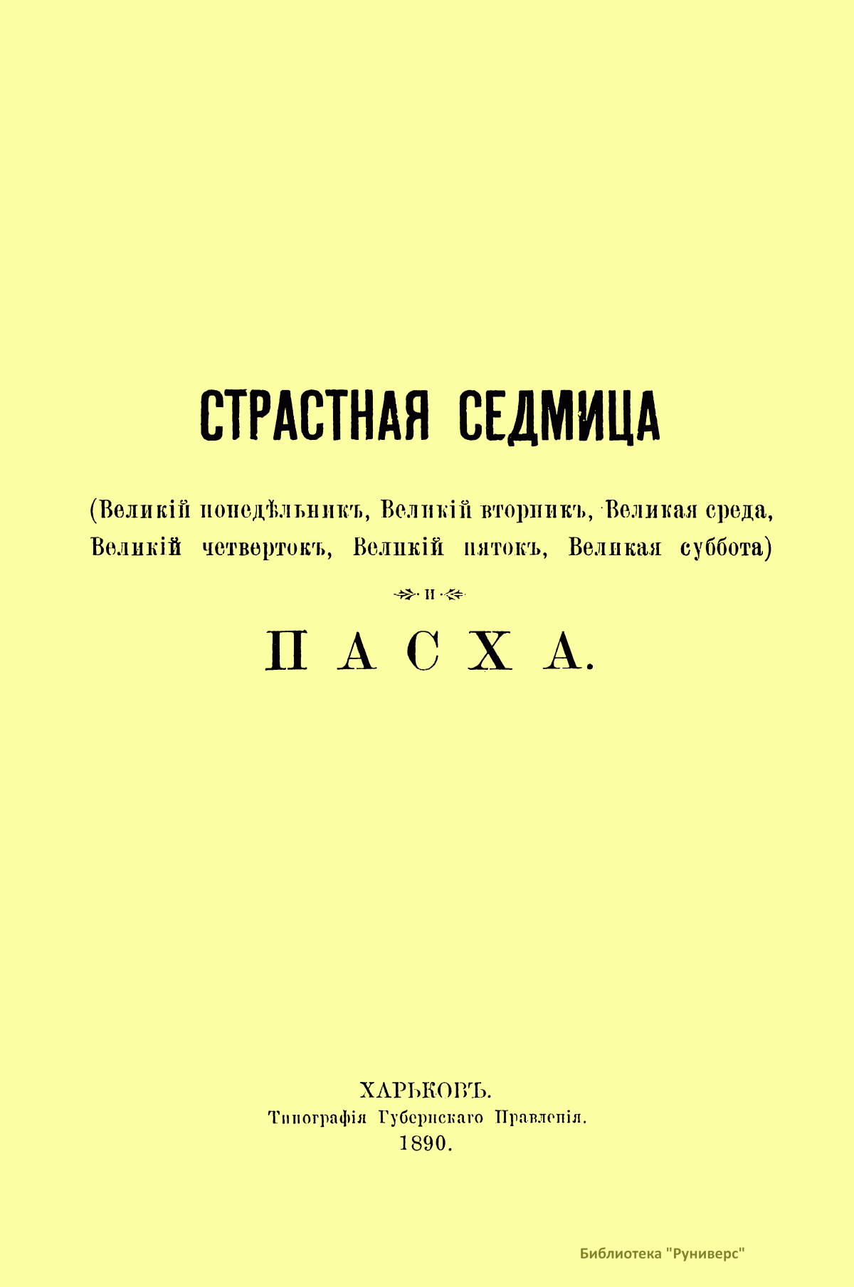 Страстная седмица (Великiй понедѣльникъ, Великiй вторникъ, Великая среда, Великiй четвертокъ, Великiй пятокъ, Великая суббота). Пасха