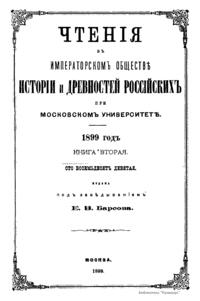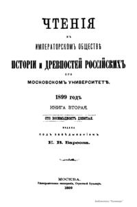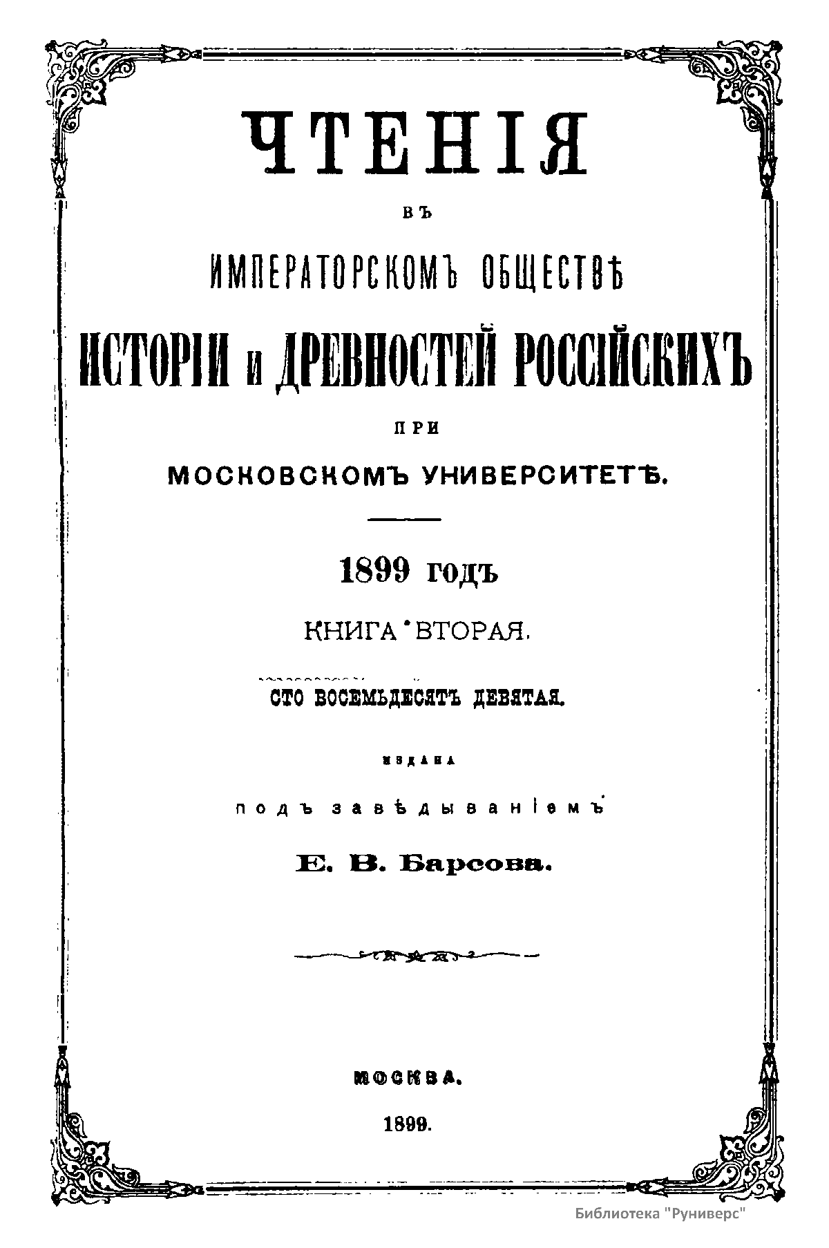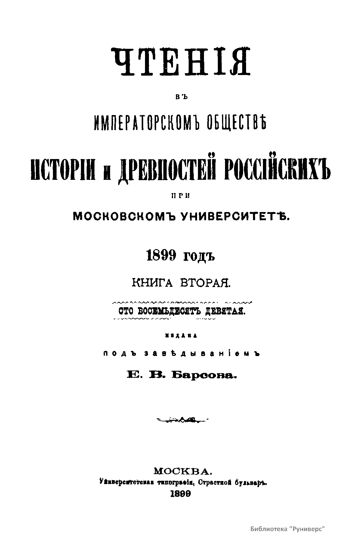 Чтенiя въ императорскомъ обществѣ Исторiи и Древностей Россiйских при Московском Университетѣ. 1899 годъ. Книга вторая