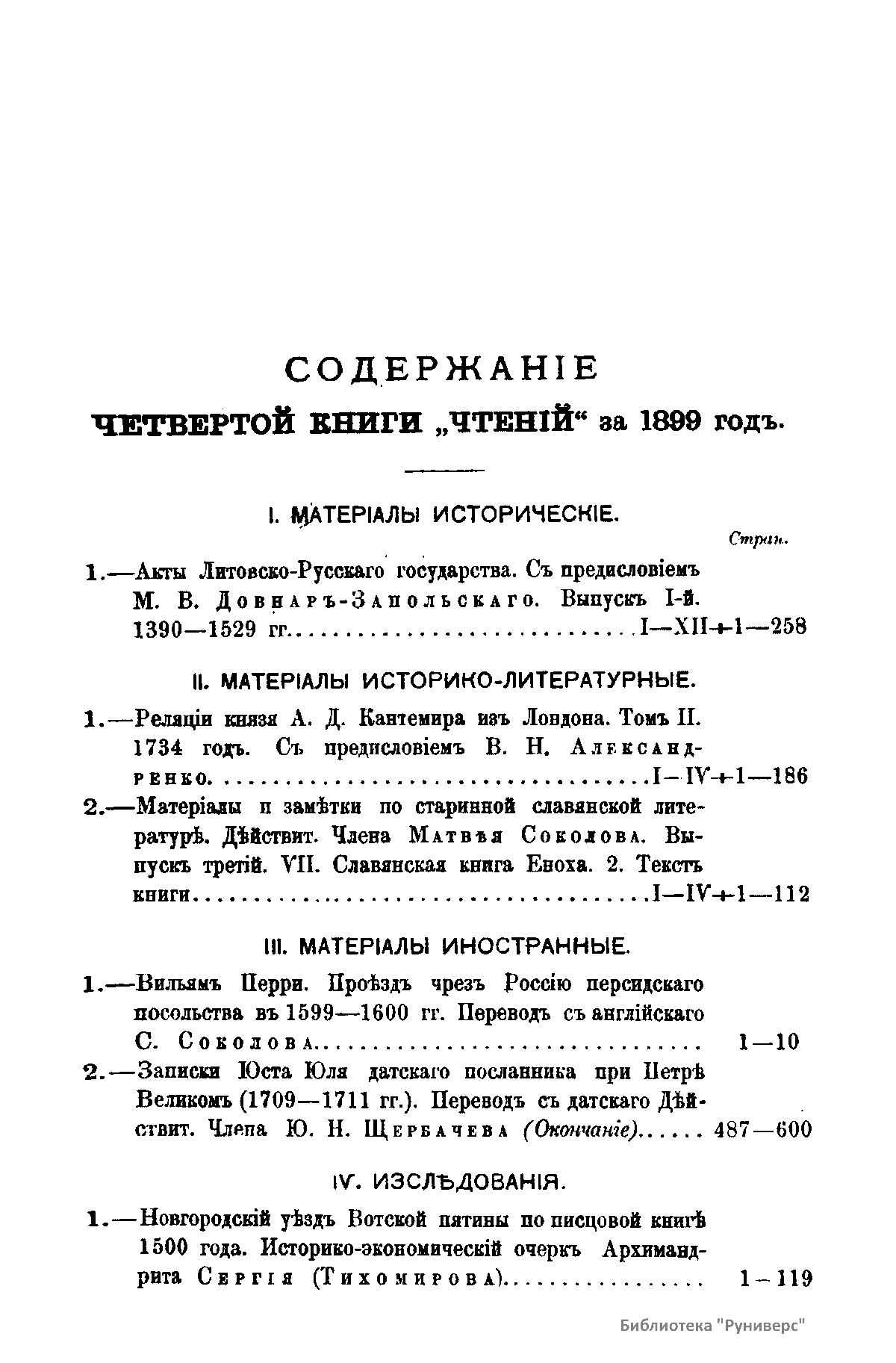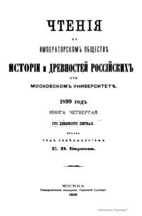 Чтенiя въ императорскомъ обществѣ Исторiи и Древностей Россiйских при Московском Университетѣ. 1899 годъ. Книга четвертая