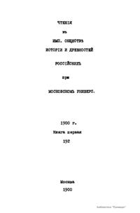 Чтенiя въ императорскомъ обществѣ Исторiи и Древностей Россiйских при Московском Университетѣ. 1900 годъ. Книга первая