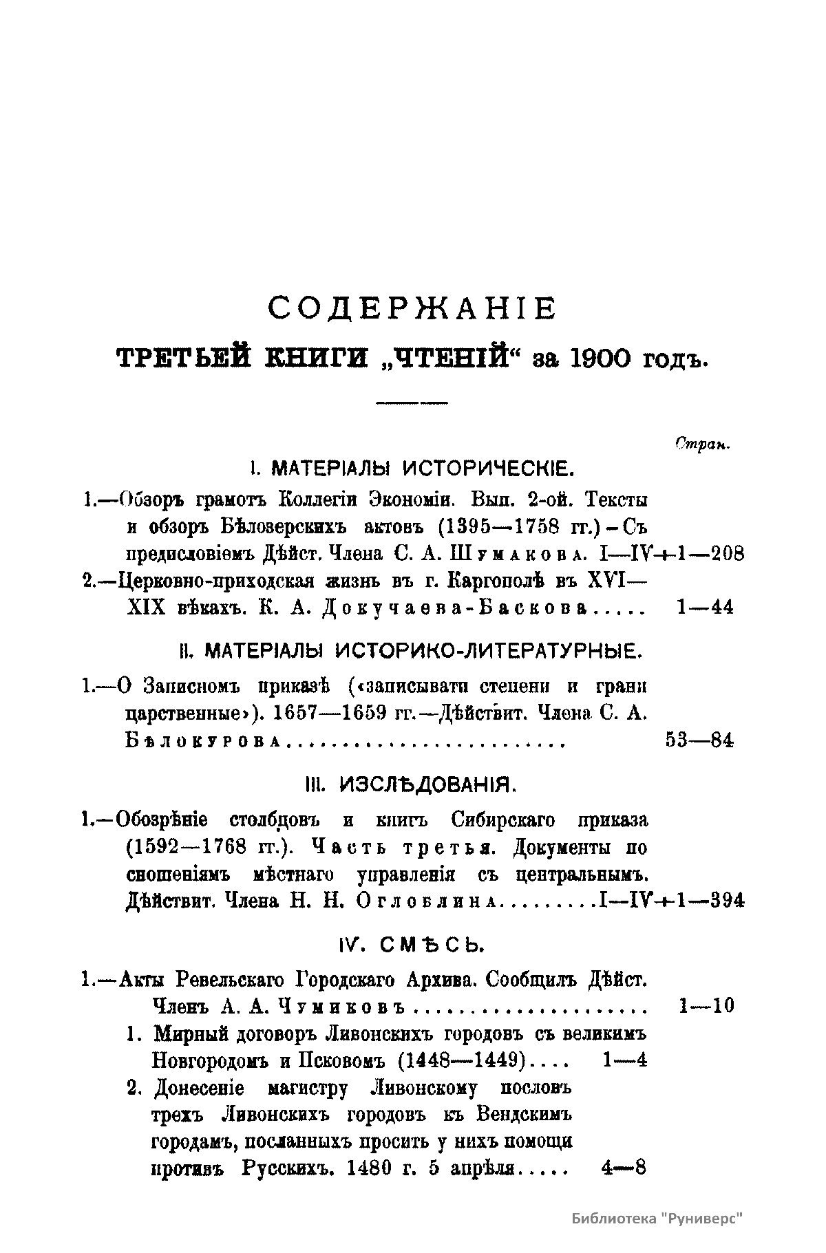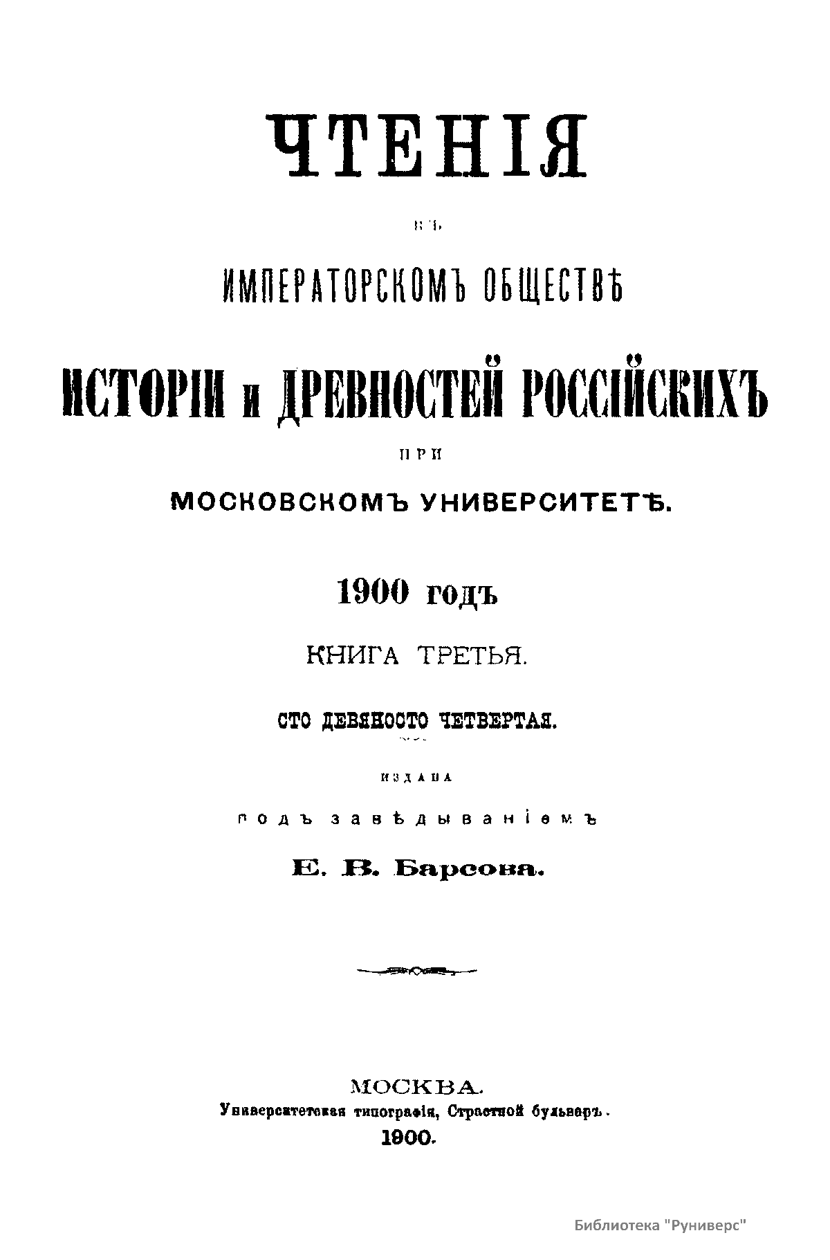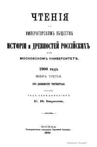Чтенiя въ императорскомъ обществѣ Исторiи и Древностей Россiйских при Московском Университетѣ. 1900 годъ. Книга третья