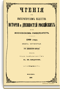 Чтенiя въ императорскомъ обществѣ Исторiи и Древностей Россiйских при Московском Университетѣ. 1900 годъ. Книга четвертая