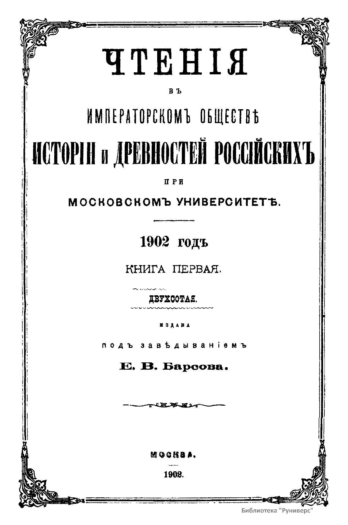 Чтенiя въ Императорскомъ Обществѣ Исторiи и Древностей Россiйскихъ при Московскомъ Университетѣ. 1902 годъ. Книга первая