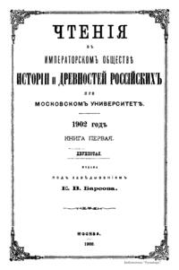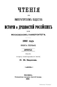 Чтения в Императорском Обществе Истории и Древностей Российских при Московском Университете. 1902 год. Книга первая