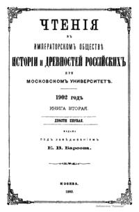 Чтенiя въ Императорскомъ Обществѣ Исторiи и Древностей Россiйскихъ при Московскомъ Университетѣ. 1902 годъ. Книга вторая
