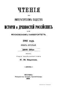 Чтения в Императорском Обществе Истории и Древностей Российских при Московском Университете. 1902 год. Книга вторая