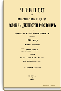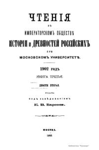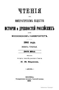 Чтения в Императорском Обществе Истории и Древностей Российских при Московском Университете. 1902 год. Книга третья
