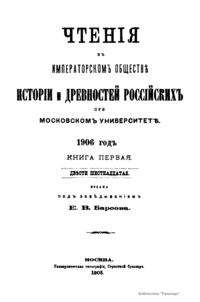 Чтения в Императорском Обществе Истории и Древностей Российских при Московском Университете. 1906 год. Книга первая