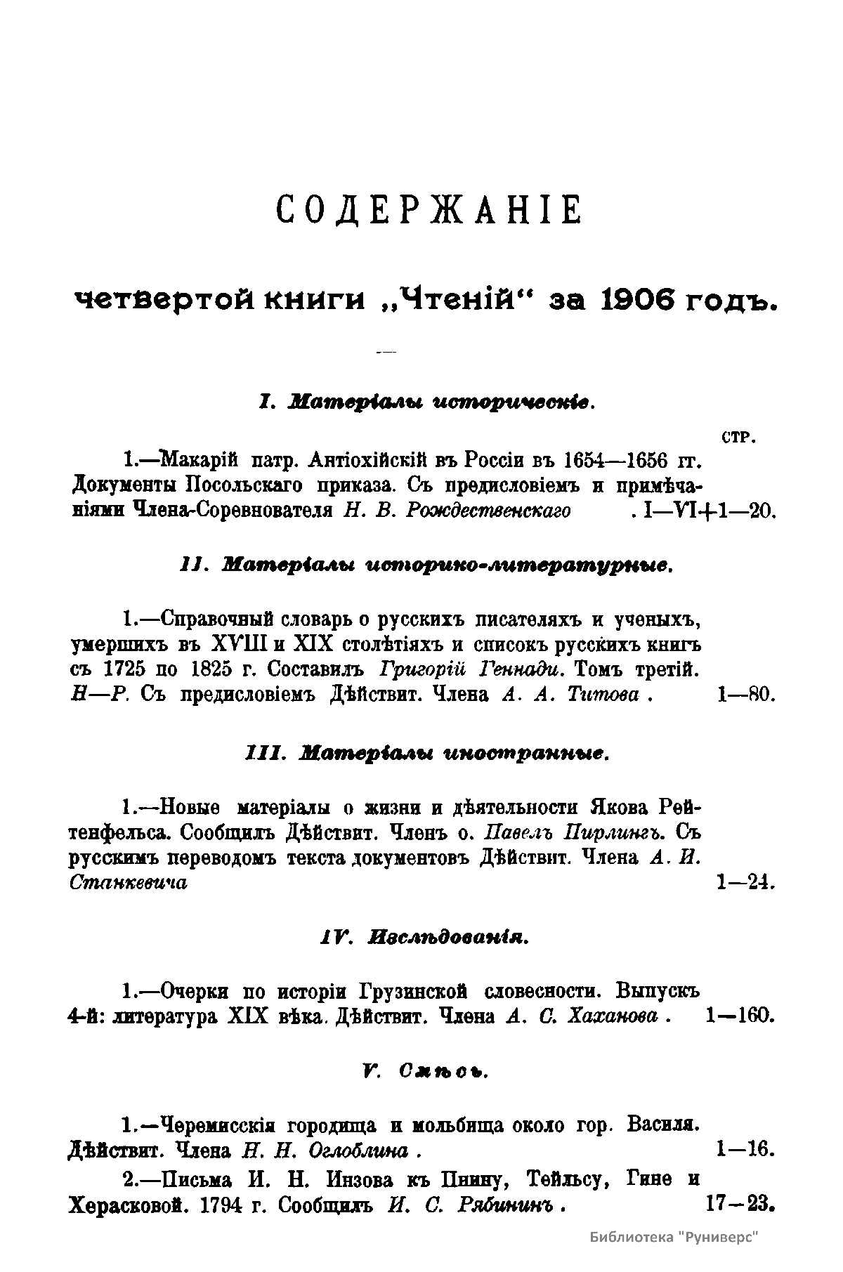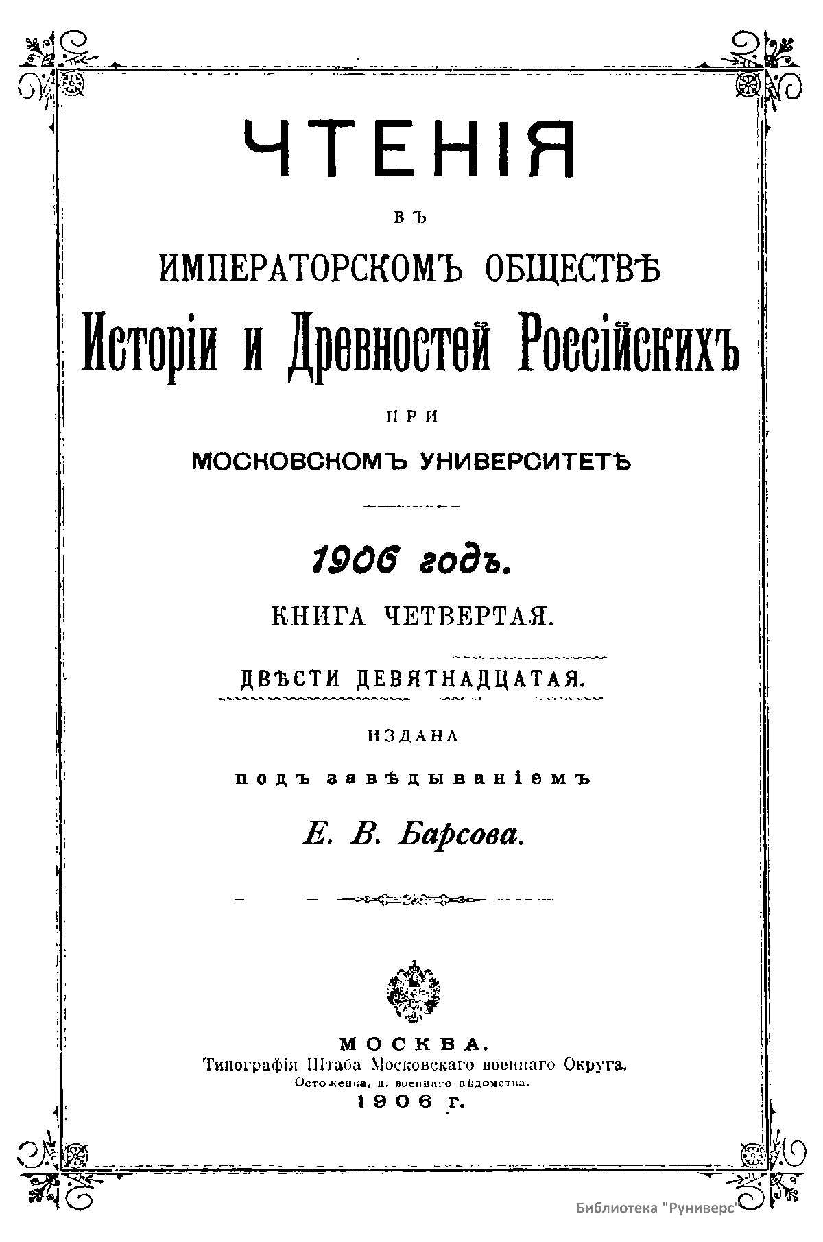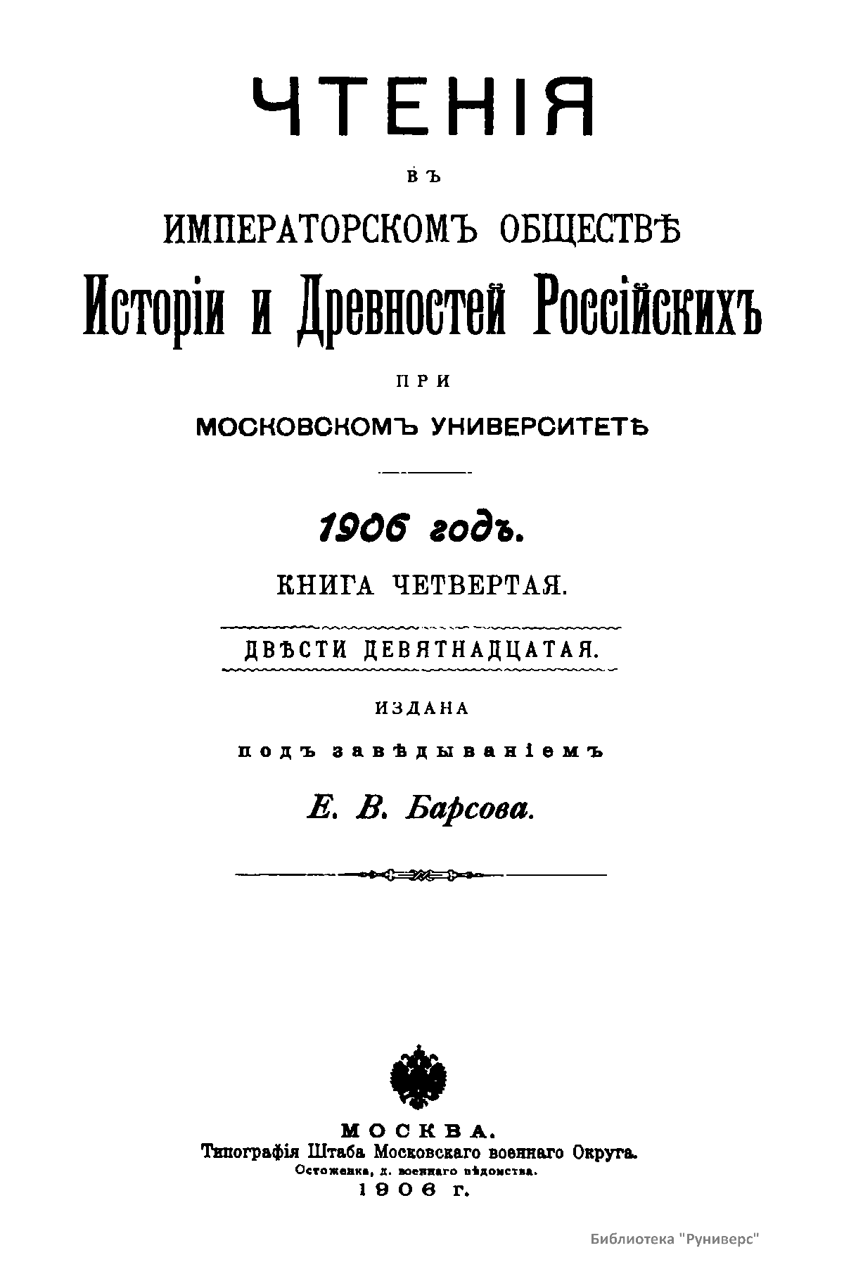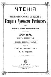 Чтенiя въ Императорскомъ Обществѣ Исторiи и Древностей Россiйскихъ при Московскомъ Университетѣ. 1906 годъ. Книга четвертая