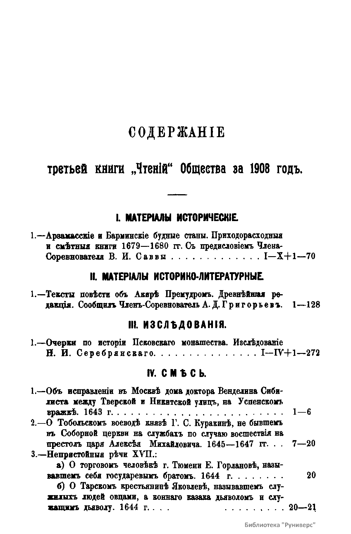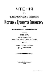 Чтенiя въ Императорскомъ Обществѣ Исторiи и Древностей Россiйскихъ при Московскомъ Университетѣ. 1908 годъ. Книга третья