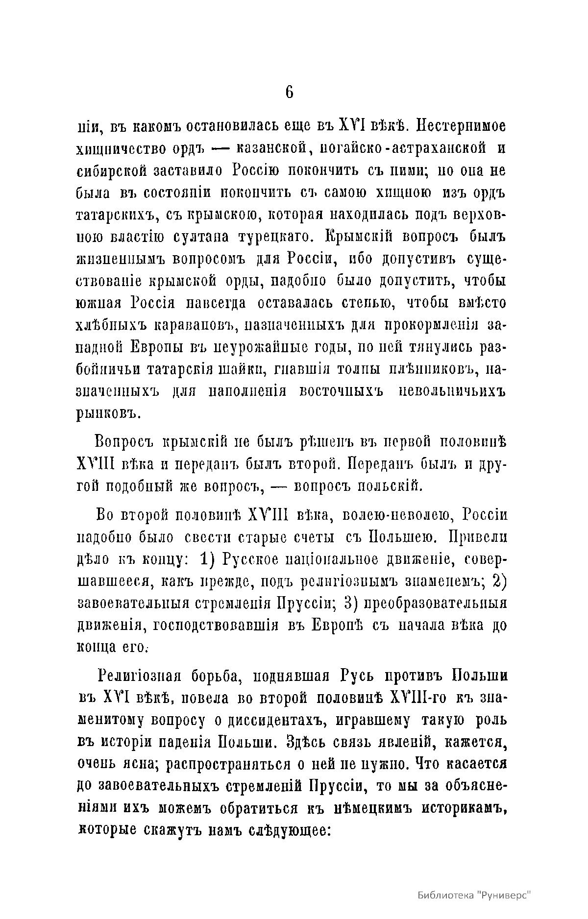 В 1772-м, 1793-м и 1795 гг. Пруссия, Австрия и Россия совершают раздел Речи Посполитой. Историк Сергей Соловьев подробно описывает причины и ход этих разделов. Основными причинами конца Польши он считает: русское национальное движение, совершавшееся, как и прежде, под религиозным знаменем; завоевательные стремления Пруссии; преобразовательные движения, господствовавшие в Европе в XVIII в. В приложении опубликованы следующие документы: 1. Письмо к императрице Екатерине Александра Ильича Бибикова из Варшавы 14 августа 1772 г. 2. Записка Безбородко 1790 г. о том, что по окончании шведской войны нельзя начинать войны с Пруссией и Англией и нужно сблизиться с Пруссией. 3. Записка императрицы к графу Зубову о Людовике XVI. 4. Записка императрицы относительно революционной Франции 1791 г. 5. Письмо короля французского Людовика XVI к королю шведскому Густаву III 26 ноября 1791 г. 6. Письмо Людовика XVI к королю прусскому от 3 ноября 1791 г. 7. Письмо Марии Антуанеты к Екатерине II 3 декабря 1791 г. 8. Записка Екатерины без числа. 9. О Марии Антуанете по поводу проекта спасти ее одну с дофином из Франции. 10. Записка без числа. 11. Записка к Румянцеву во Франкфурт по делам французским. 12. Письмо Екатерины II к принцу Нассау-Зиген о делах французских.