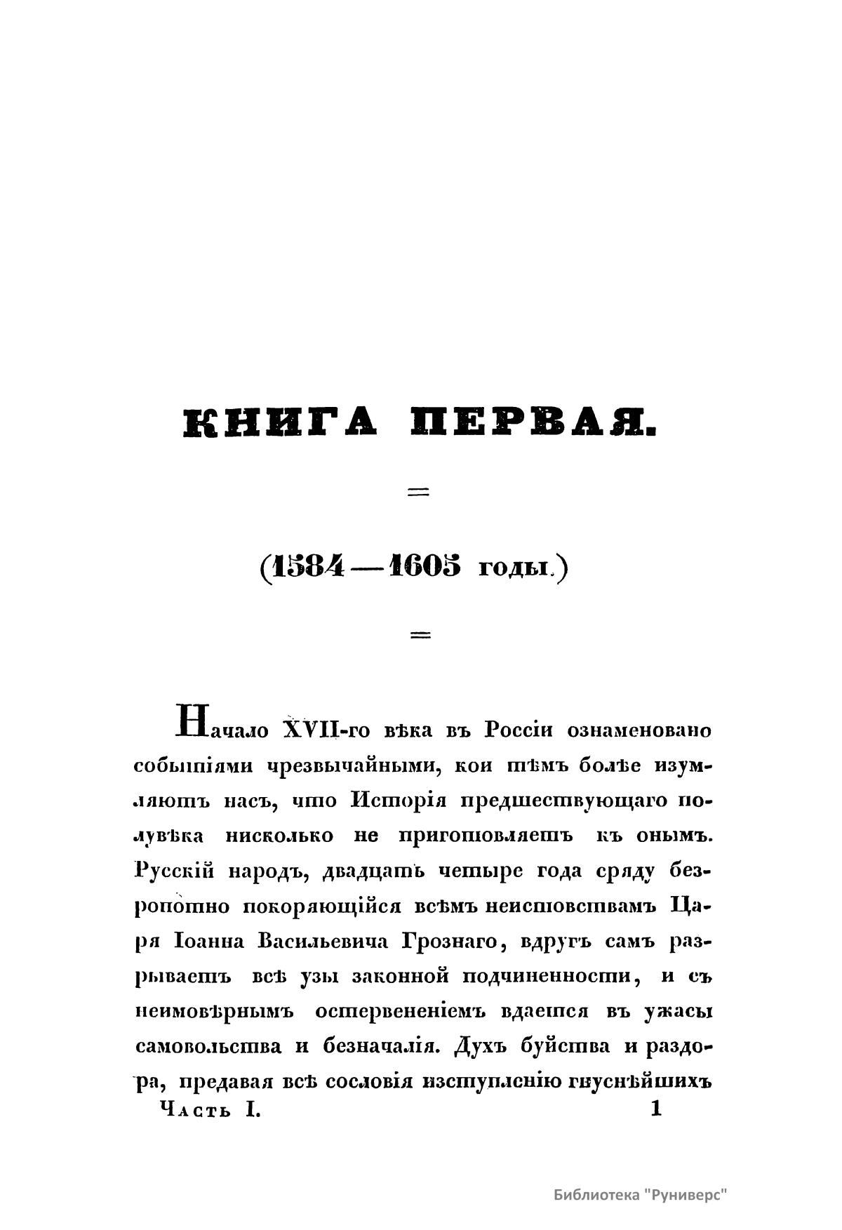Издание посвящено событиям в России в конце XVI начале XVII в. Первый том заключает две книги. Первая охватывает период с 1584 г. – года смерти Ивана Грозного и вступления на престол Федора Иоанновича – по 1605 г., когда умирает Борис Годунов. Вторая – 1605 – 1606 гг. – время царствования самозванца Лжедмитрия I. В приложении (289) опубликовано 17 документов. Второй том посвящен царствованию Василия Шуйского. Третья книга второго тома охватывает период с 1606-го по 1608 г., когда царские войска были разбиты под Болховом, а около Москвы возник Тушинский лагерь – столица нового претендента на престол Лжедмитрия II. Четвертая – 1608 – 1609 гг. В 1609 г. польские войска осадили Смоленск и дошли до Троице-Сергиева монастыря. В приложении (303) опубликовано 20 документов и план осады Троице-Сергиева монастыря. Пятая книга третьего тома описывает события конца правления Шуйского – 1609 – 1610 гг. и посвящена в основном князю Михаилу Васильевичу Скопину-Шуйскому. Шестая – 1610 г., когда Шуйский был свергнут боярами и насильно пострижен в монахи; власть временно перешла к Семибоярщине – правительству, подписавшему в августе 1610 договор с польским королем Сигизмундом III об избрании Владислава царем при условии, что тот примет православие; в Москву вступили польские войска. В приложении (268) опубликовано 17 документов.