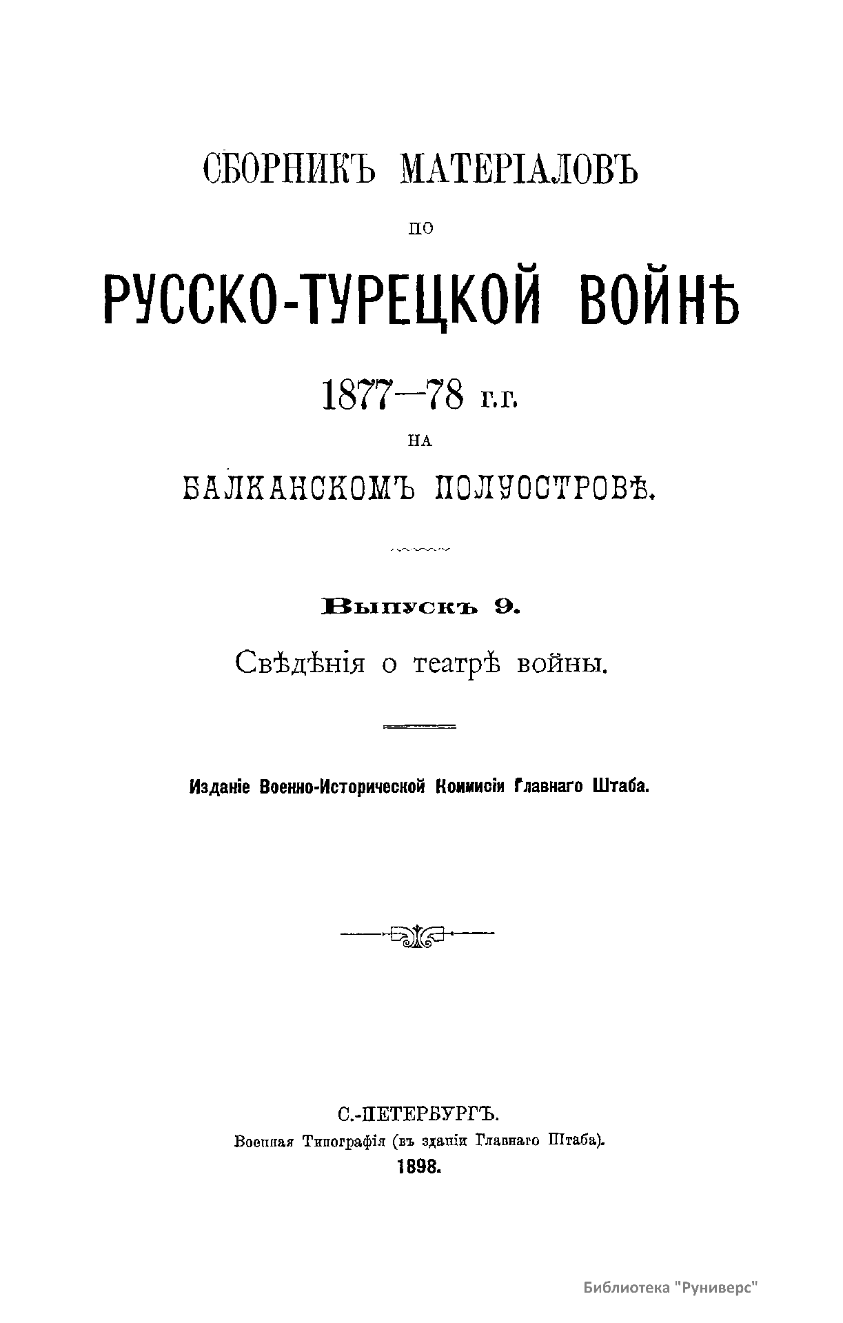 Сборникъ матерiаловъ по русско-турецкой войнѣ 1877-1878 г.г. на Балканскомъ полуостровѣ. Выпускъ 9. Свѣдѣнія о театрѣ войны
