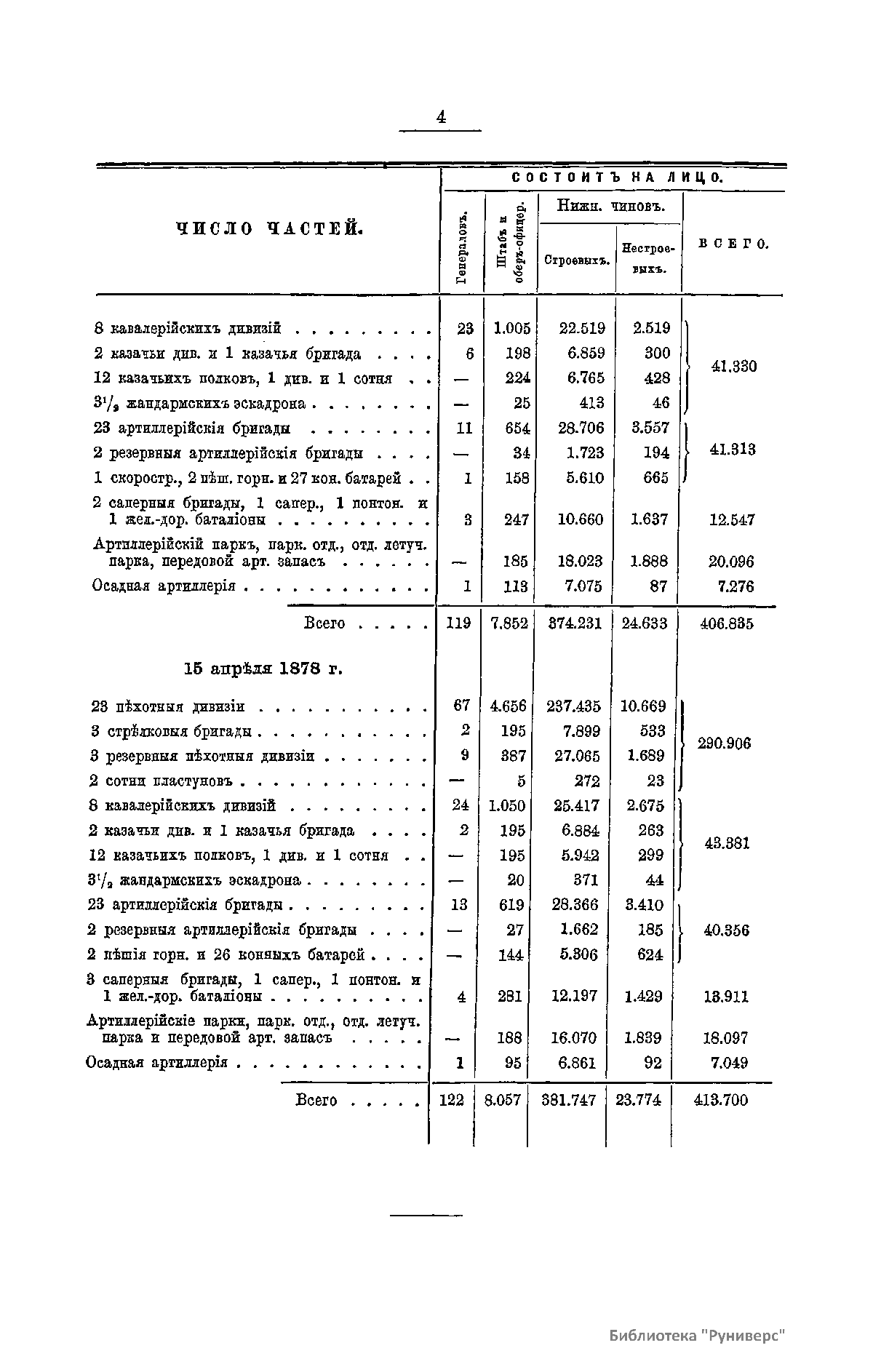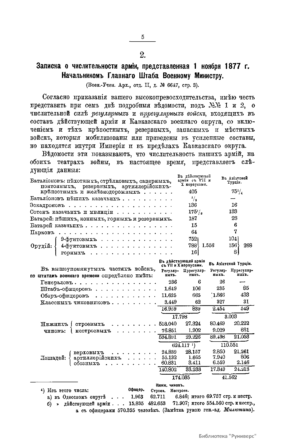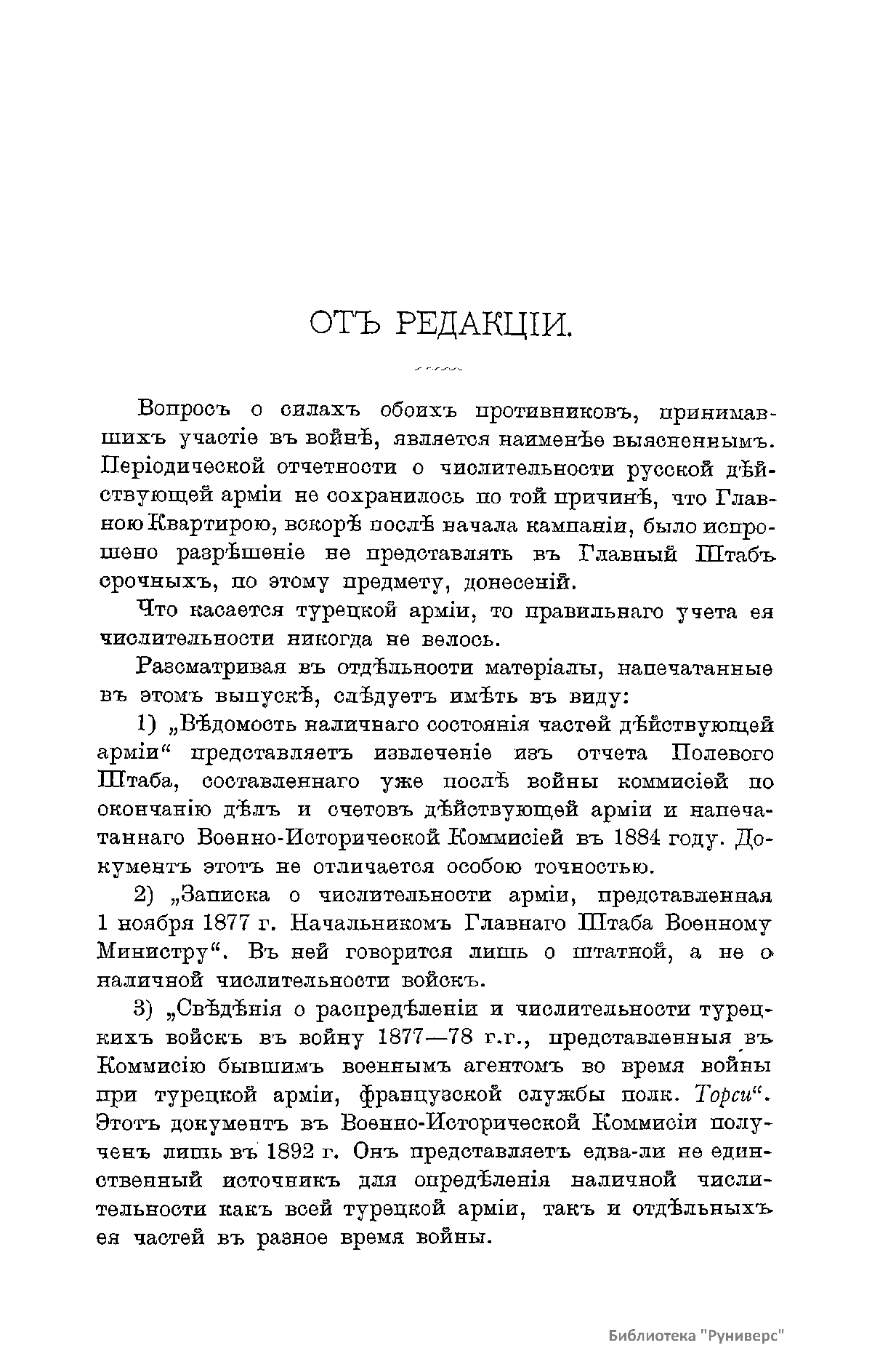 Сборникъ матерiаловъ по русско-турецкой войнѣ 1877-1878 г.г. на Балканскомъ полуостровѣ. Выпускъ 12. Численность русскихъ и турецкихъ войскъ въ теченiе кампанiи