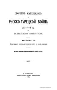 Военно-историческая комиссия Генерального штаба представляет сборник материалов по русско-турецкой войне 1877 – 1878 гг. на Балканском полуострове в 97 выпусках. Издание формирует полное представление о военных действиях и участниках этой войны. Русско-турецкая война 1877 – 1878 гг. была вызвана нежеланием Турции принять меры к улучшению положения подвластных ей христианских княжеств, обусловленному парижским трактатом 1856 г, и стремлением России укрепить свое влияние на Балканах. Способствовала освобождению народов Балканского полуострова от османского владычества. Россия объявила войну Турции 12 апреля 1877 г. Основные события: 1877 – сражение на Шипке, осада и взятие русскими войсками Плевны и Карса; 1878 – зимний переход русской армии через Балканский хребет, победы у Шипки – Шейново, Филиппополя, взятие Адрианополя. Завершилась Сан-Стефанским миром 1878 г., который обеспечил независимость балканским народам и территориальные приобретения России. Но Берлинский трактат ограничил независимость Болгарии и влияние России на Балканах.
