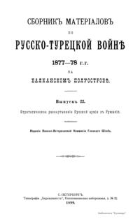 Сборникъ матерiаловъ по русско-турецкой войнѣ 1877-1878 г.г. на Балканскомъ полуостровѣ. Выпускъ 22. Стратегическое развертыванiе Русской армiи въ Румынiи
