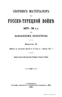 Сборникъ матерiаловъ по русско-турецкой войнѣ 1877-1878 г.г. на Балканскомъ полуостровѣ. Выпускъ 27. Дѣйствiя на восточномъ фронтѣ съ 22 Iюня по 1 августа 1877 г.