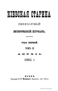 Киевская старина. Год первый. Том II. Апрель-Июнь 1882 г.