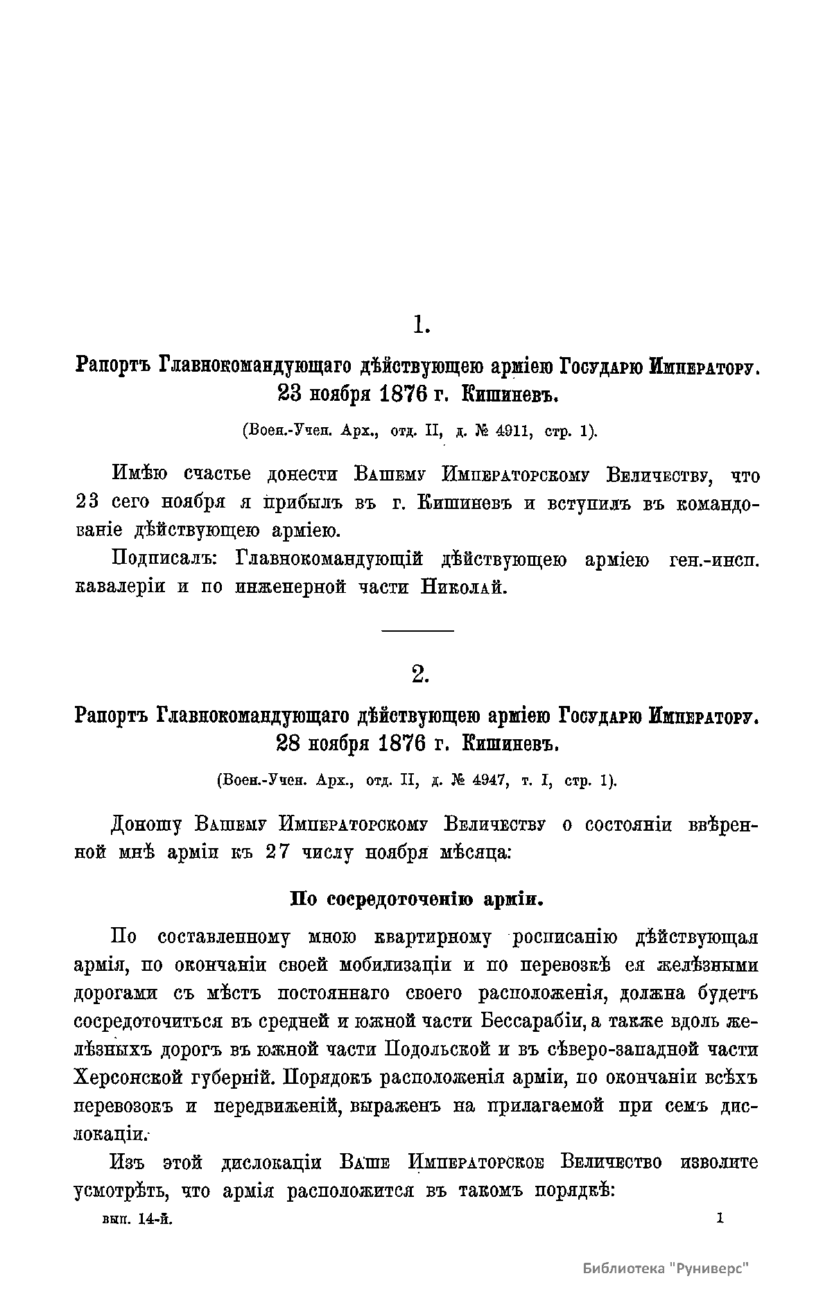 Выпуск 5. Отчет о состоянии и действиях 14-й пехотной дивизии