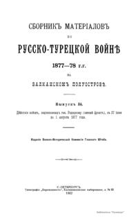 Сборникъ матерiаловъ по русско-турецкой войнѣ 1877-1878 г.г. на Балканскомъ полуостровѣ. Выпускъ 34. Дѣйствiя войскъ, подчиненныхъ ген. Радецкому (южный фронтъ), съ 27 iюня по 1 августа 1877 года