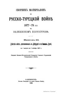 Сборникъ матерiаловъ по русско-турецкой войнѣ 1877-1878 г.г. на Балканскомъ полуостровѣ. Выпускъ 39. Дѣйствія войскъ, расположенныхъ въ Добруджѣ и на Нижнемъ Дунаѣ съ 1 августа по 1 октября 1877 г.