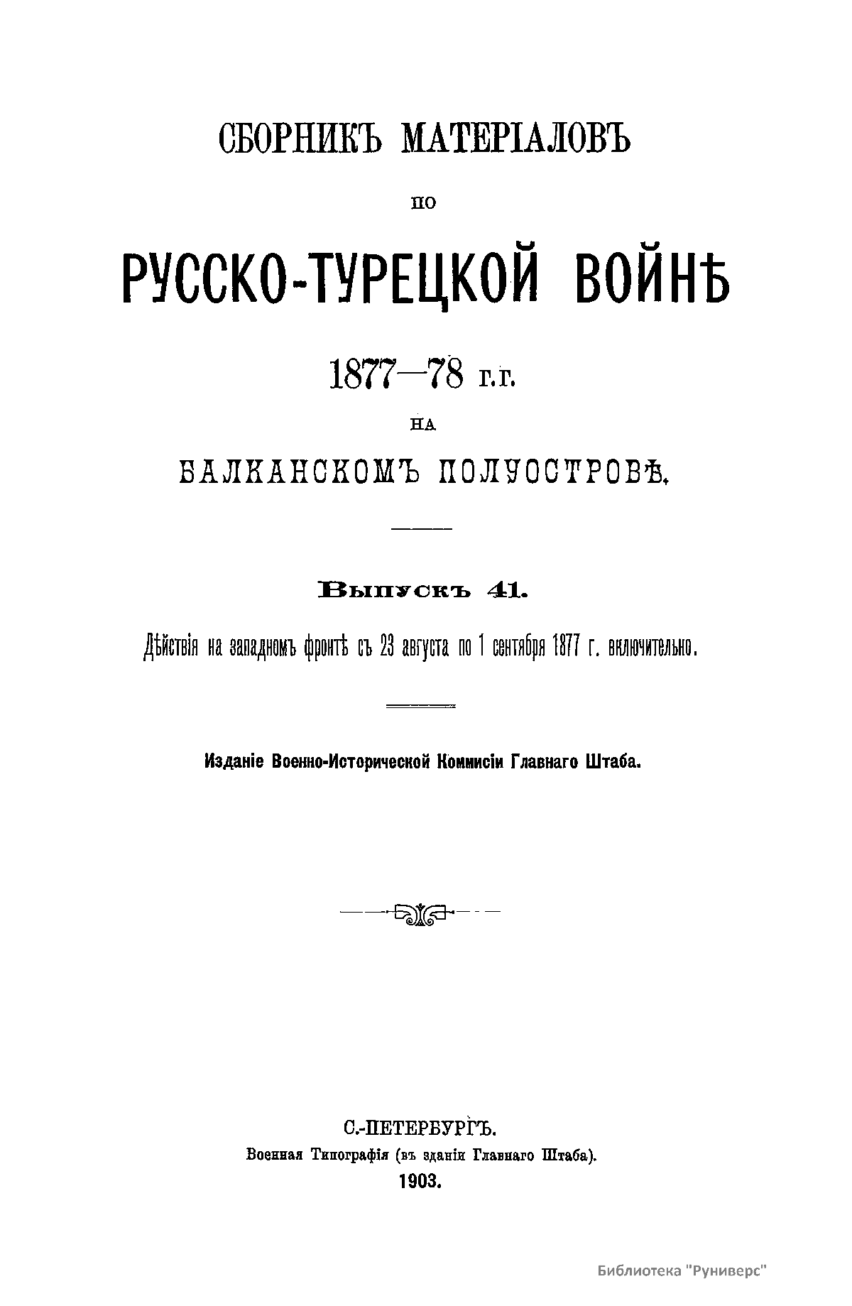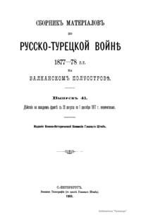 Сборникъ матерiаловъ по русско-турецкой войнѣ 1877-1878 г.г. на Балканскомъ полуостровѣ. Выпускъ 41. Дѣйствiя на западномъ фронтѣ съ 23 августа по 1 сентября 1877 г. включительно
