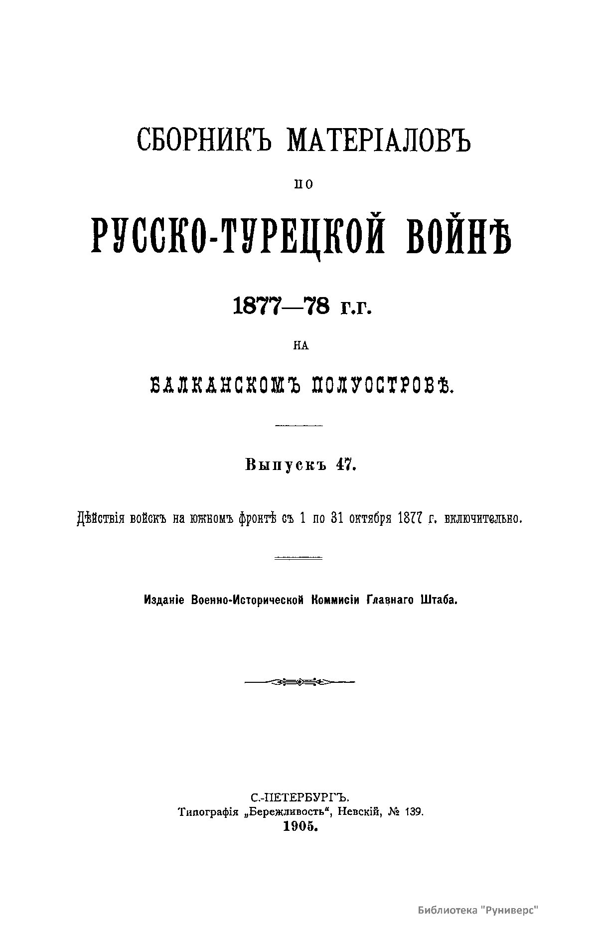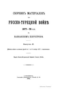 Сборникъ матерiаловъ по русско-турецкой войнѣ 1877-1878 г.г. на Балканскомъ полуостровѣ. Выпускъ 47. Дѣйствiя войскъ на южномъ фронтѣ съ 1 по 31 октября 1877 г. включительно