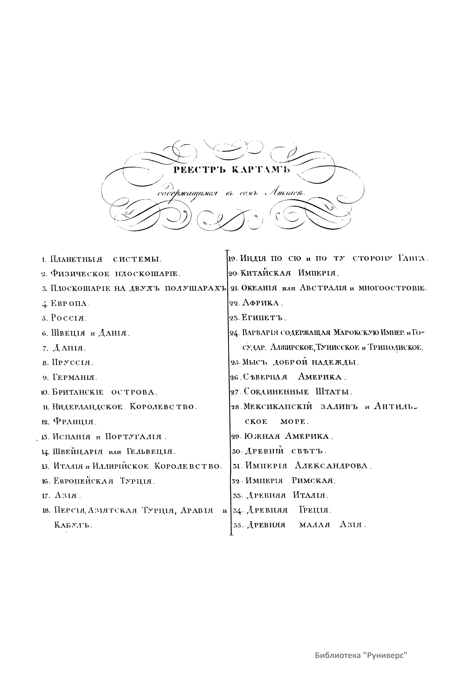 Атлас «классической и общей Древней и Новой Географии, составленный Географом Лапи, Директором Топографического Кабинета Французского Короля, гравированный со второго издания на Российском языке и пополненный под смотрением Коллежского Советника А. Максимовича, Географа Департамента народного Просвещения, с одобрения Военнотопографического депо». Атлас вышел в свет в Санкт-Петербурге в 1821 г. Данный атлас состоит из 35 иллюминованных гравированных листов, из которых 6 последних (№ 30 — 35) посвящены истории Древнего мира.