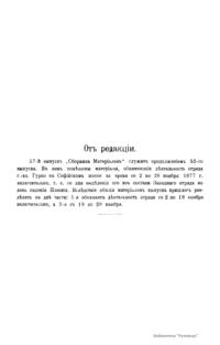 Военно-историческая комиссия Генерального штаба представляет сборник материалов по русско-турецкой войне 1877 – 1878 гг. на Балканском полуострове в 97 выпусках. Издание формирует полное представление о военных действиях и участниках этой войны. Русско-турецкая война 1877 – 1878 гг. была вызвана нежеланием Турции принять меры к улучшению положения подвластных ей христианских княжеств, обусловленному парижским трактатом 1856 г, и стремлением России укрепить свое влияние на Балканах. Способствовала освобождению народов Балканского полуострова от османского владычества. Россия объявила войну Турции 12 апреля 1877 г. Основные события: 1877 – сражение на Шипке, осада и взятие русскими войсками Плевны и Карса; 1878 – зимний переход русской армии через Балканский хребет, победы у Шипки – Шейново, Филиппополя, взятие Адрианополя. Завершилась Сан-Стефанским миром 1878 г., который обеспечил независимость балканским народам и территориальные приобретения России. Но Берлинский трактат ограничил независимость Болгарии и влияние России на Балканах.