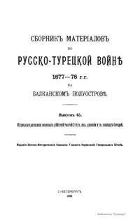 Военно-историческая комиссия Генерального штаба представляет сборник материалов по русско-турецкой войне 1877 – 1878 гг. на Балканском полуострове в 97 выпусках. Издание формирует полное представление о военных действиях и участниках этой войны. Русско-турецкая война 1877 – 1878 гг. была вызвана нежеланием Турции принять меры к улучшению положения подвластных ей христианских княжеств, обусловленному парижским трактатом 1856 г, и стремлением России укрепить свое влияние на Балканах. Способствовала освобождению народов Балканского полуострова от османского владычества. Россия объявила войну Турции 12 апреля 1877 г. Основные события: 1877 – сражение на Шипке, осада и взятие русскими войсками Плевны и Карса; 1878 – зимний переход русской армии через Балканский хребет, победы у Шипки – Шейново, Филиппополя, взятие Адрианополя. Завершилась Сан-Стефанским миром 1878 г., который обеспечил независимость балканским народам и территориальные приобретения России. Но Берлинский трактат ограничил независимость Болгарии и влияние России на Балканах.