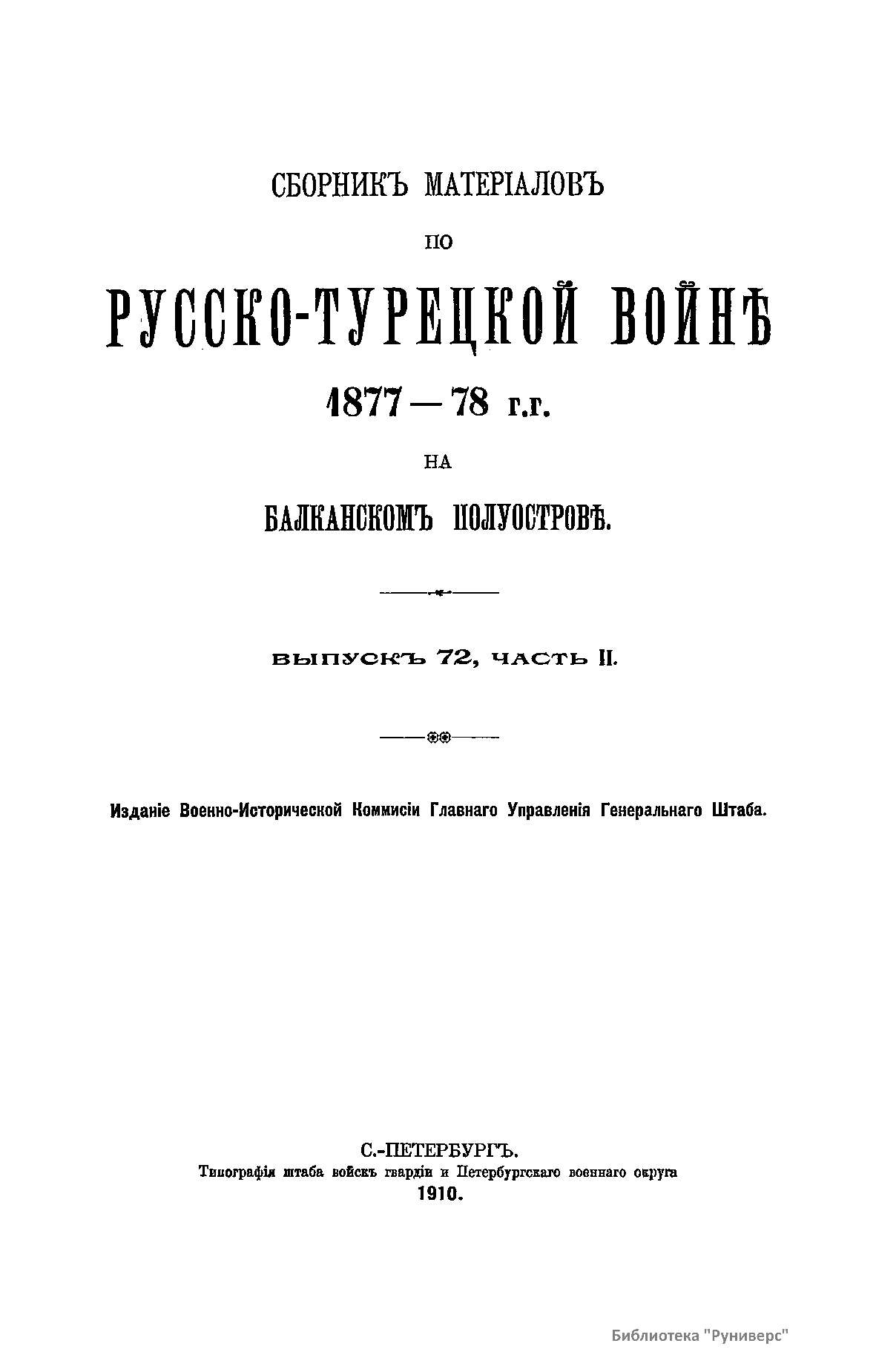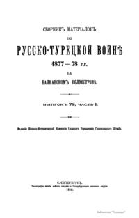 Сборникъ матерiаловъ по русско-турецкой войнѣ 1877-1878 г.г. на Балканскомъ полуостровѣ. Выпускъ 72, часть II.