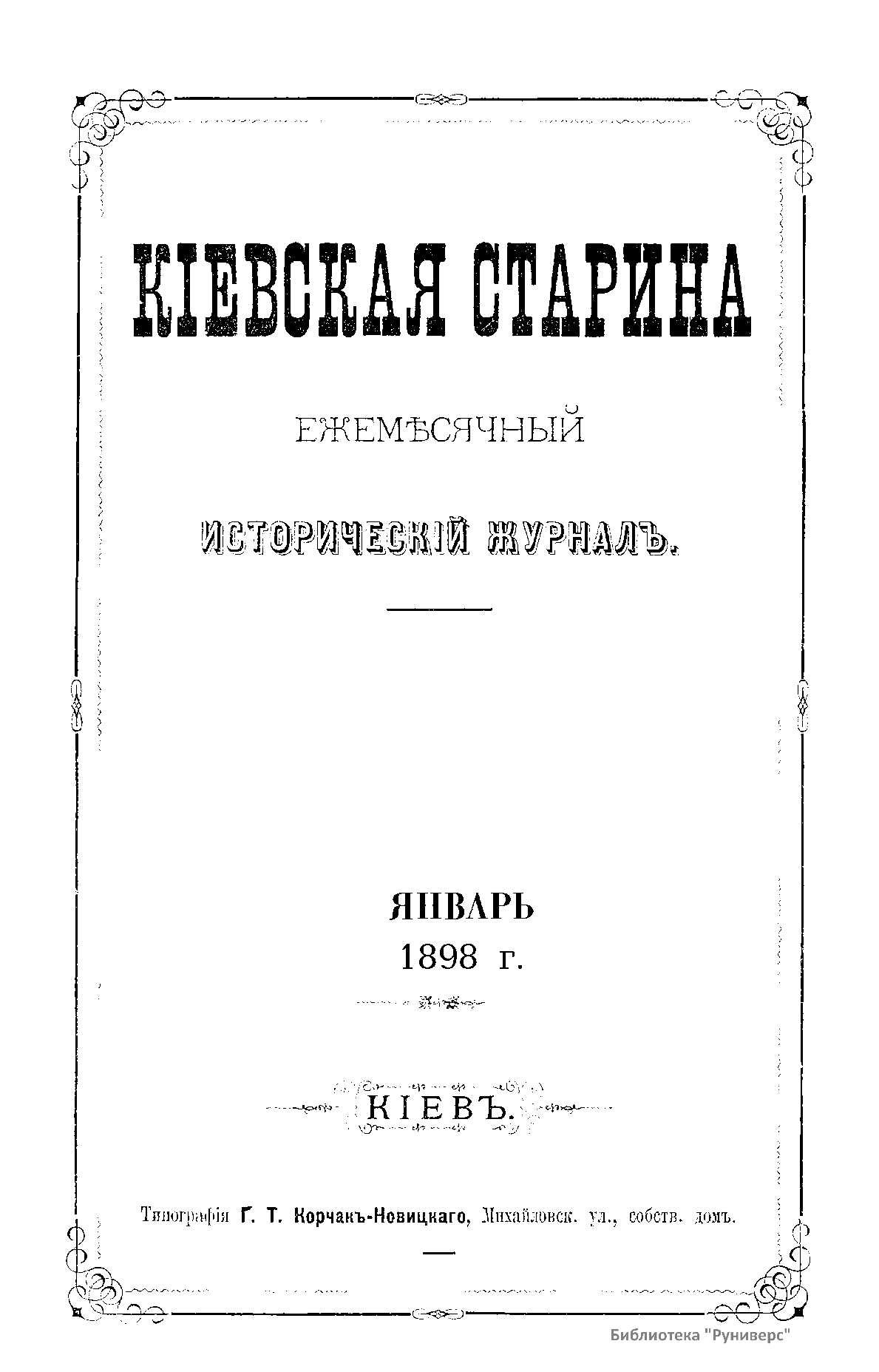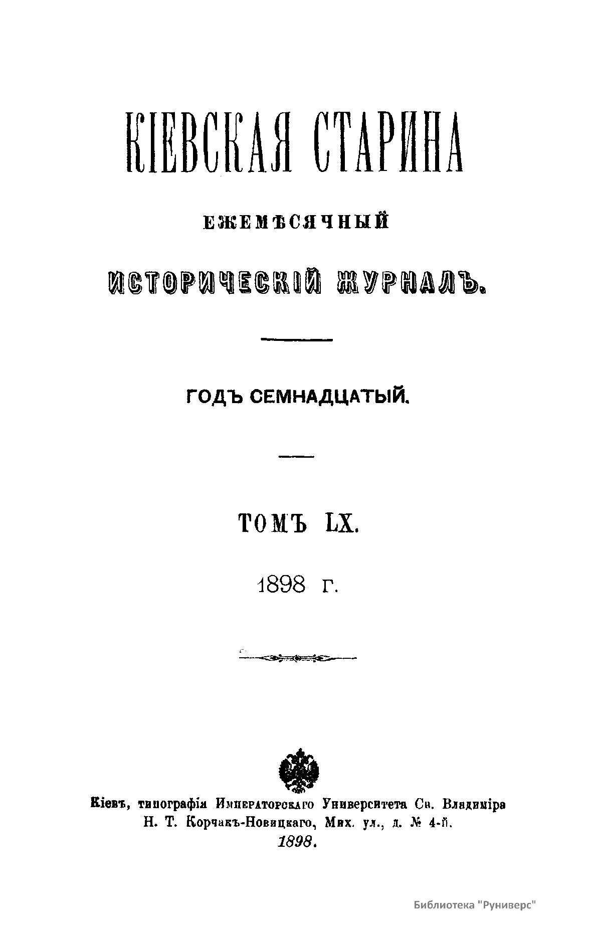 Кiевская старина. Годъ семнадцатый. Томъ LX. Январь-Мартъ 1898 г.