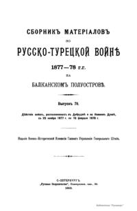 Сборникъ матерiаловъ по русско-турецкой войнѣ 1877-1878 г.г. на Балканскомъ полуостровѣ. Выпускъ 78. Дѣйствiя войскъ, расположенныхъ въ Добруджѣ и на Нижнемъ Дунаѣ, съ 29 ноября 1877 г. по 19 февраля 1878 г.