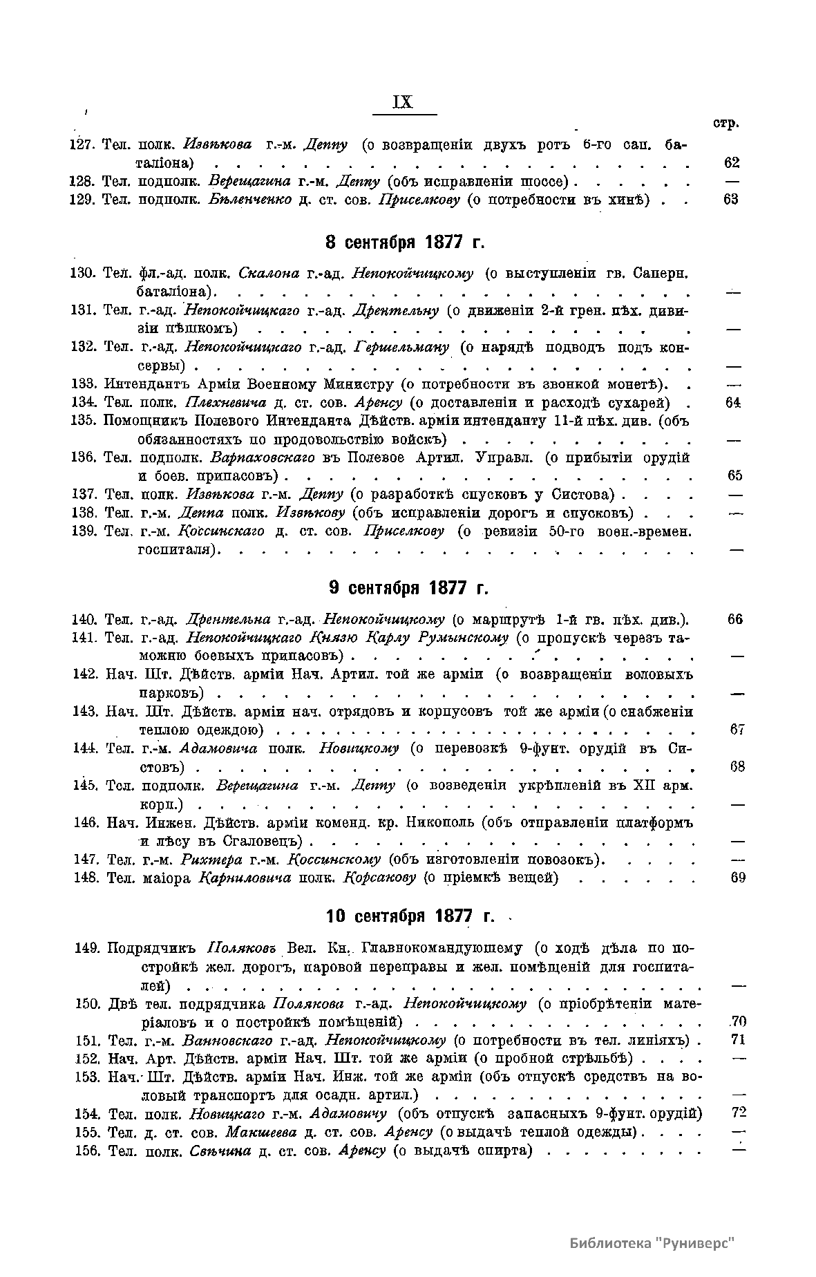 Сборникъ матерiаловъ по русско-турецкой войнѣ 1877-1878 г.г. на Балканскомъ полуостровѣ. Выпускъ 84. Документы, относящiеся до дѣятельности тыловыхъ учрежденiй Армiи съ 1 сентября по 31 октября 1877 г.