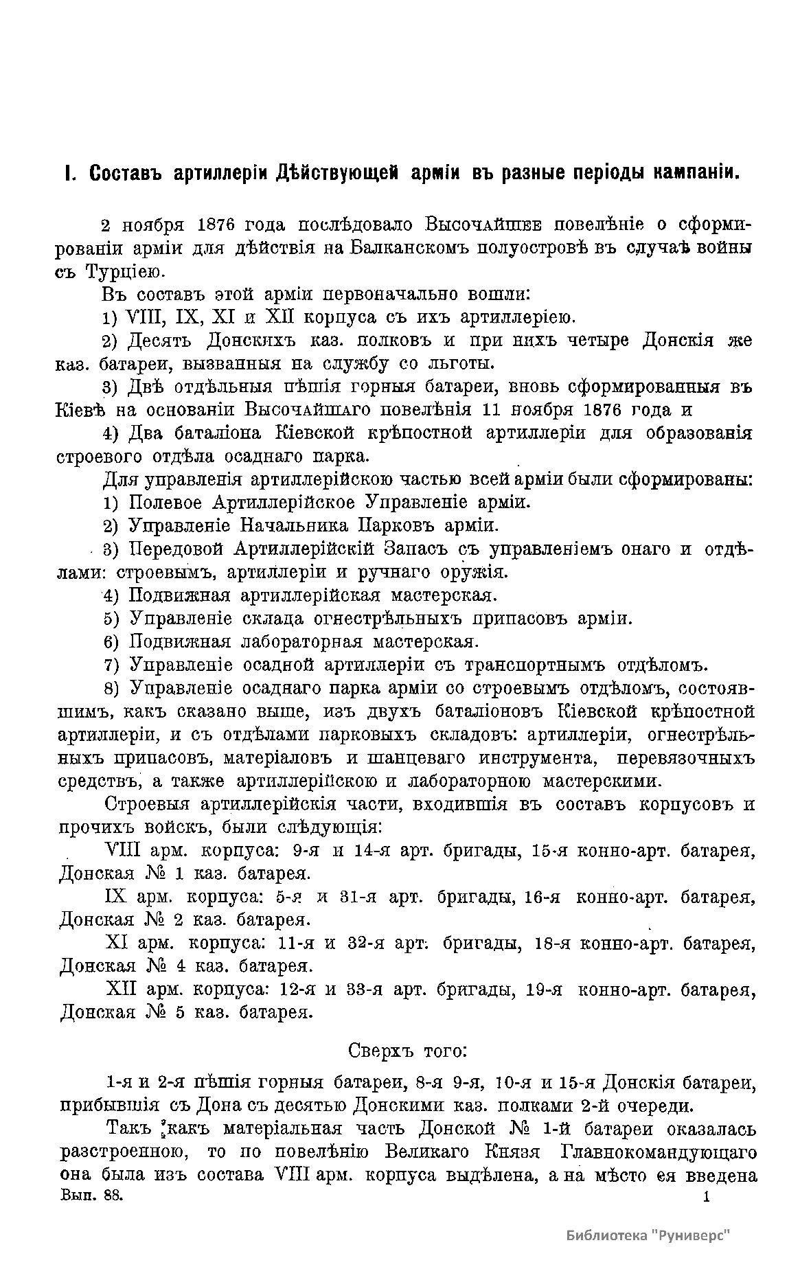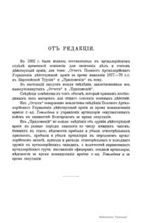 Сборник материалов по русско-турецкой войне 1877-1878 гг. на Балканском полуострове. Выпуск 88. Краткий отчет Полевого Артиллерийского Управления действующей армии за время командования армией Его Императорским Высочеством, Генерал-Фельдмаршалом...