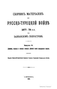 Сборникъ матерiаловъ по русско-турецкой войнѣ 1877-1878 г.г. на Балканскомъ полуостровѣ. Выпускъ 89. Дневники, журналы и описанiя военныхъ дѣйствия частей гренадерскаго корпуса