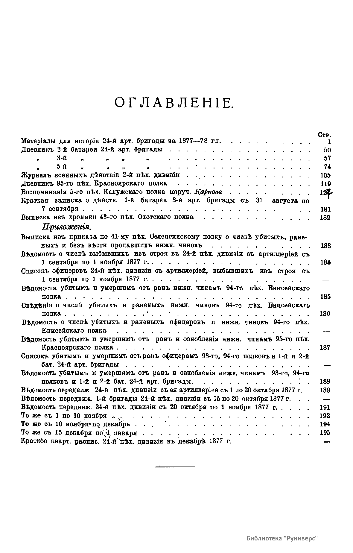 Сборникъ матерiаловъ по русско-турецкой войнѣ 1877-1878 г.г. на Балканскомъ полуостровѣ. Выпускъ 90. Часть I. Дневники и журналы военныхъ дѣйствiй частей 2-й, 3-й и 24-й пѣх. дивизiй не вошедшiе въ ч. I, свѣдѣнiя об убитыхъ и раненыхъ и маршруты тѣхъ же частей