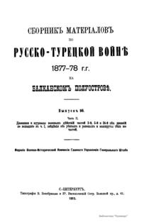 Военно-историческая комиссия Генерального штаба представляет сборник материалов по русско-турецкой войне 1877 – 1878 гг. на Балканском полуострове в 97 выпусках. Издание формирует полное представление о военных действиях и участниках этой войны. Русско-турецкая война 1877 – 1878 гг. была вызвана нежеланием Турции принять меры к улучшению положения подвластных ей христианских княжеств, обусловленному парижским трактатом 1856 г, и стремлением России укрепить свое влияние на Балканах. Способствовала освобождению народов Балканского полуострова от османского владычества. Россия объявила войну Турции 12 апреля 1877 г. Основные события: 1877 – сражение на Шипке, осада и взятие русскими войсками Плевны и Карса; 1878 – зимний переход русской армии через Балканский хребет, победы у Шипки – Шейново, Филиппополя, взятие Адрианополя. Завершилась Сан-Стефанским миром 1878 г., который обеспечил независимость балканским народам и территориальные приобретения России. Но Берлинский трактат ограничил независимость Болгарии и влияние России на Балканах.