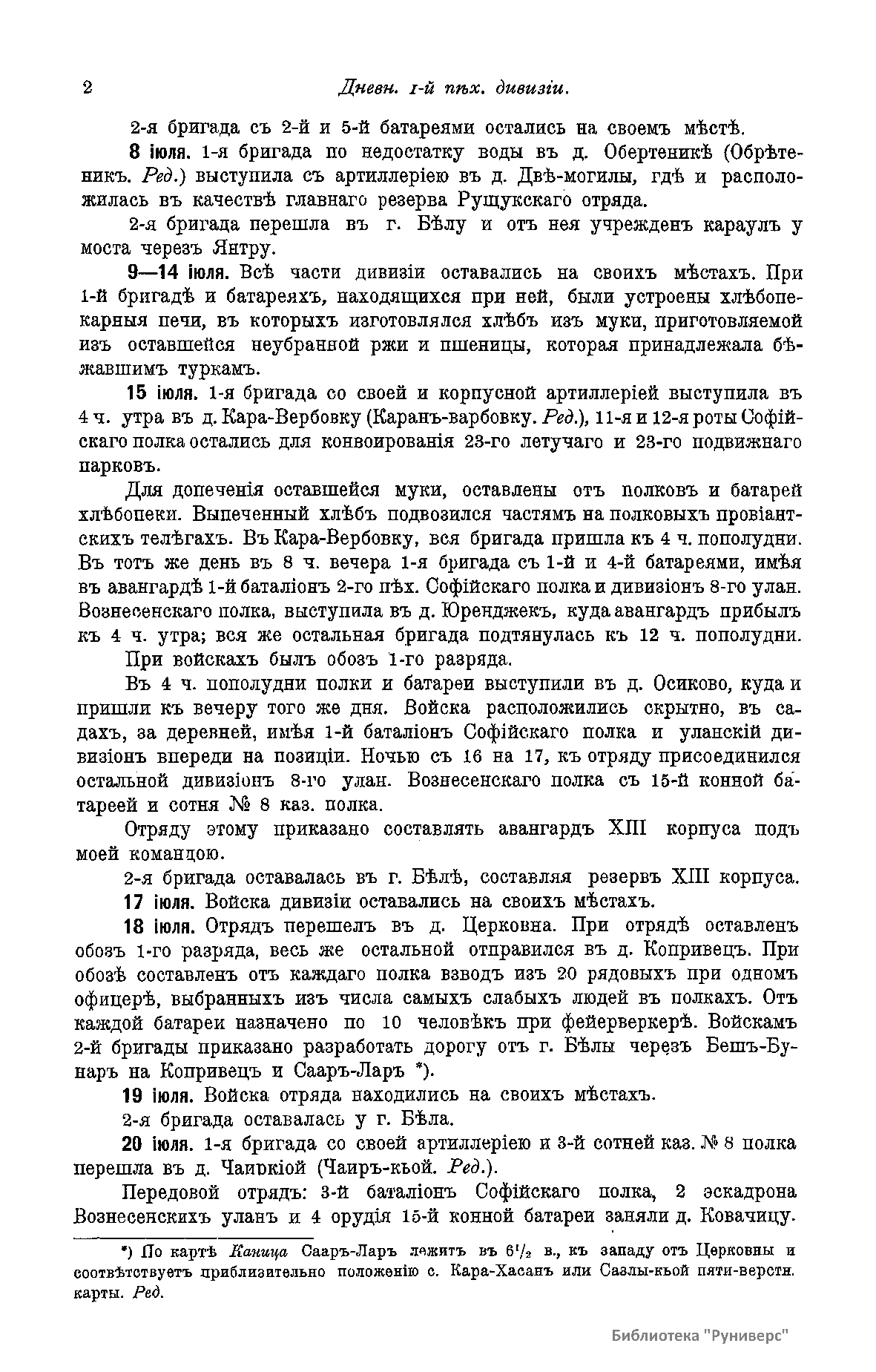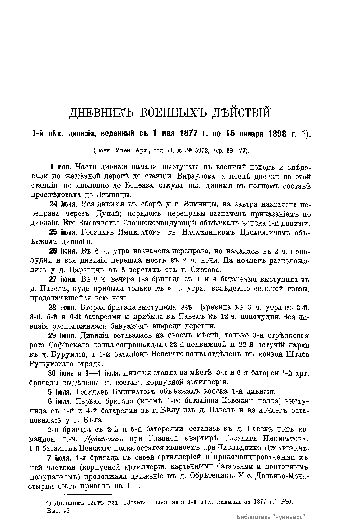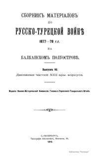 Сборникъ матерiаловъ по русско-турецкой войнѣ 1877-1878 г.г. на Балканскомъ полуостровѣ. Выпускъ 92. Дневники частей XIII арм. корпуса